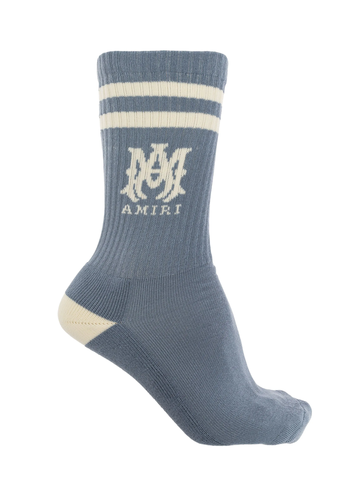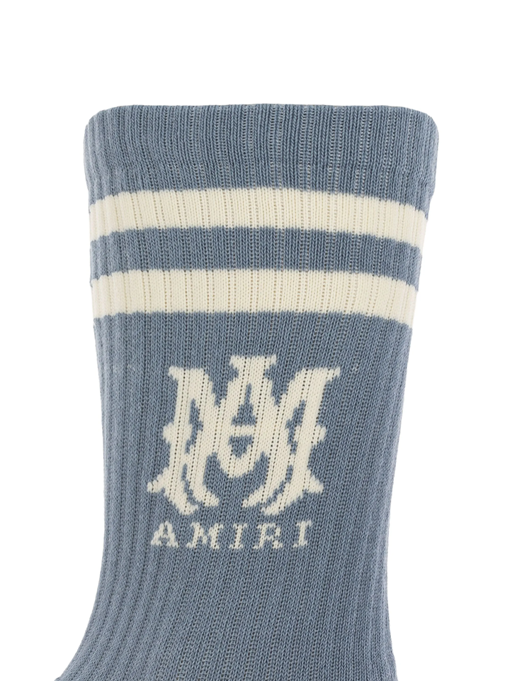 Crafted for both style and comfort, the Amiri MA Stripe Socks in Dusty Blue feature a subtle yet distinctive stripe pattern that complements any wardrobe. Made from premium materials, these socks provide breathable wear and a snug fit, ideal for all-day use. Their refined design adds a sophisticated touch to casual or formal attire, making them a versatile accessory for discerning individuals seeking quality and elegance in their essentials.