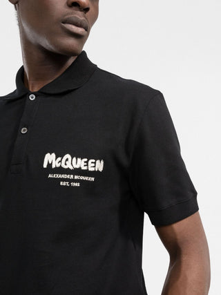 Alexander McQueen Graffiti Embroidered Logo Polo Shirt in Black