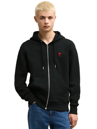Ami Paris Ami De Coeur Zip-Up Hoodie in Black