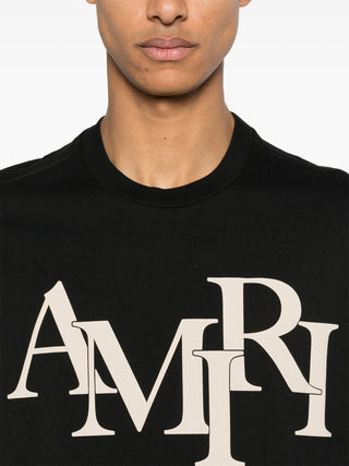 Amiri Staggered Logo Beige Printed T-Shirt in Black