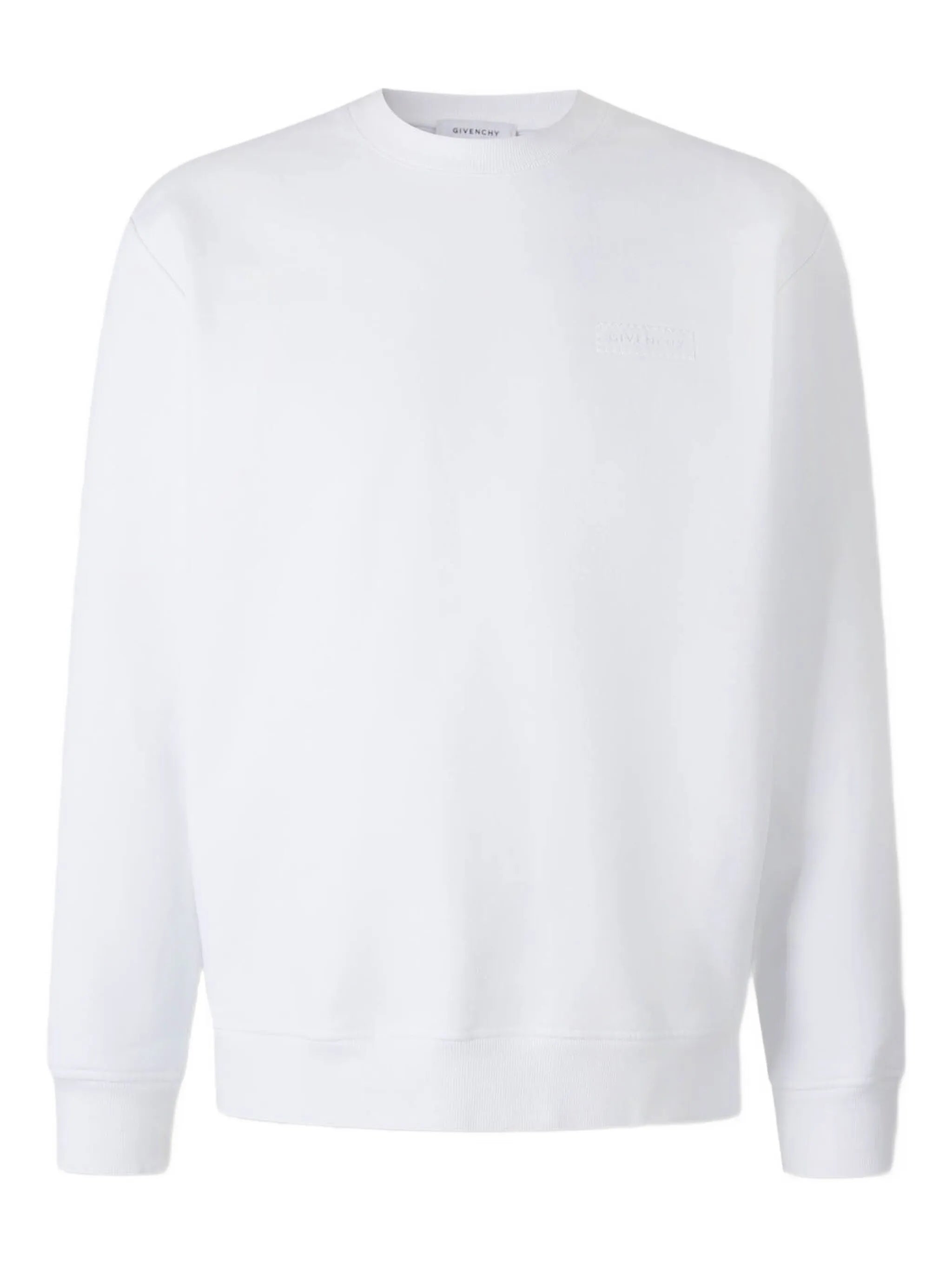 This long-sleeved fleece sweatshirt features a classic crew neck and is detailed with a grosgrain patch on the chest, showcasing the GIVENCHY signature framed by distinctive zigzag seams. The ribbed collar, hem, and cuffs ensure a comfortable, tailored fit while enhancing durability. Crafted for both style and warmth, it balances refined design with everyday comfort.