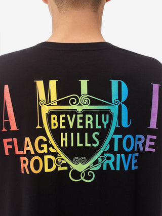 Amiri Exclusive Beverly Hills Rainbow Printed T-Shirt in Black
