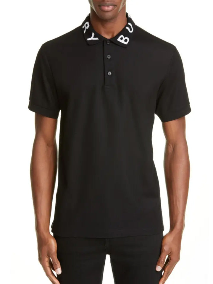 Crafted from 100% cotton, the Burberry Ryland Block Collar Writing Polo in Black offers a refined regular fit with short sleeves and a classic three-button placket. Its ribbed cuffs and polo collar ensure a comfortable, tailored silhouette, while the distinctive Burberry branding around the collar adds a subtle yet sophisticated signature detail. This polo combines timeless style with premium craftsmanship, making it an essential piece for a polished, contemporary wardrobe.