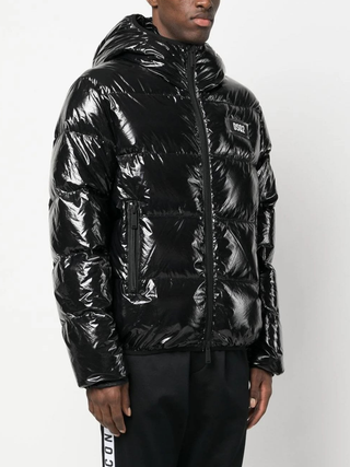 Dsquared2 Logo Patch Hooded Down Coat in Black