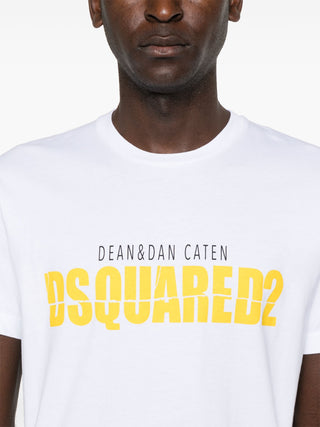 Dsquared2 Yellow Split Printed Logo T-Shirt in White