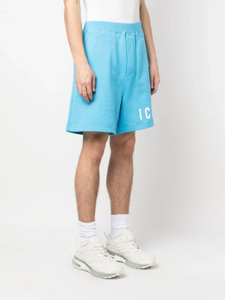Dsquared2 Icon Logo Printed Cotton Shorts in Blue