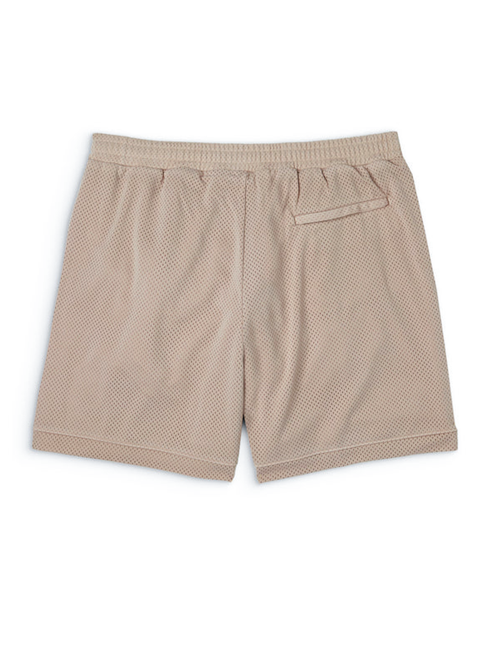 Gallery Dept French Logo Mesh Shorts in Tan combine lightweight breathability with understated luxury. The tan mesh jersey construction offers superior ventilation, while the signature French 'Dept De La Galerie' logo in white lettering at the hem delivers recognisable branding. Practical pocket placement—including a back pocket and dual side pockets—ensures everyday functionality. An elasticated waistband provides a secure, comfortable fit. A refined essential for the discerning streetwear collector.