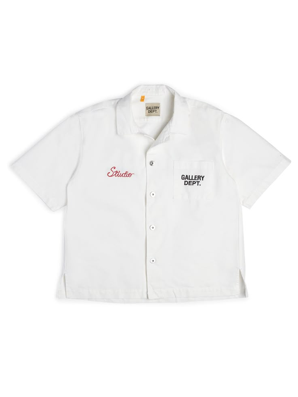 This Gallery Dept Stadium Uniform Parker Shirt in White combines classic American sportswear with refined craftsmanship. Made from breathable cotton, it features a button-up front and distinctive signature embroidery on both the front and back, offering a unique, authentic look. Ideal for those seeking a stylish yet comfortable shirt that reflects a sporty heritage with expert detailing.