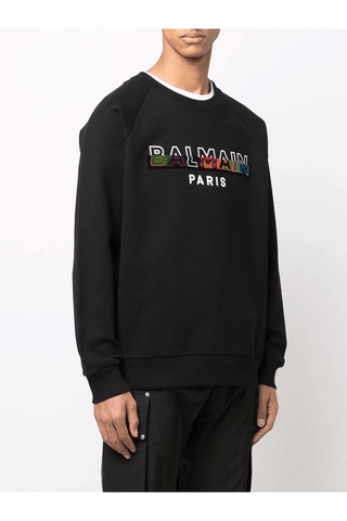 Balmain Paris Split Textured Logo Sweatshirt in Black