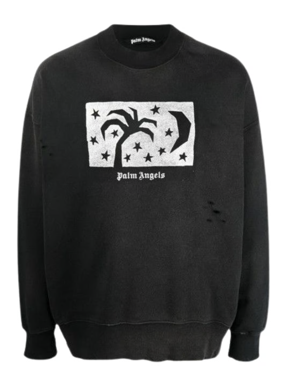Express streetwear style with this Palm Angels sweatshirt. Crafted with 100% cotton for a comfortable fit and feel, it features a small logo on the chest, elasticated sleeve and hem endings, Feel stylish and chic in this unique piece, Palm Angels Logo on Front Chest, Palm Angels Black Sweatshirt, Plain Back, Regular Fit, Palm Angels Black Jumper, 100% Cotton, Long Sleeve, Elasticated Waist and Sleeve Endings, Crew Neck, Streetwear, Made In Portugal, Black Jumper