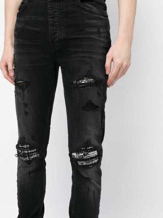 Amiri Bandana Camo Thrasher Jeans in Faded Black