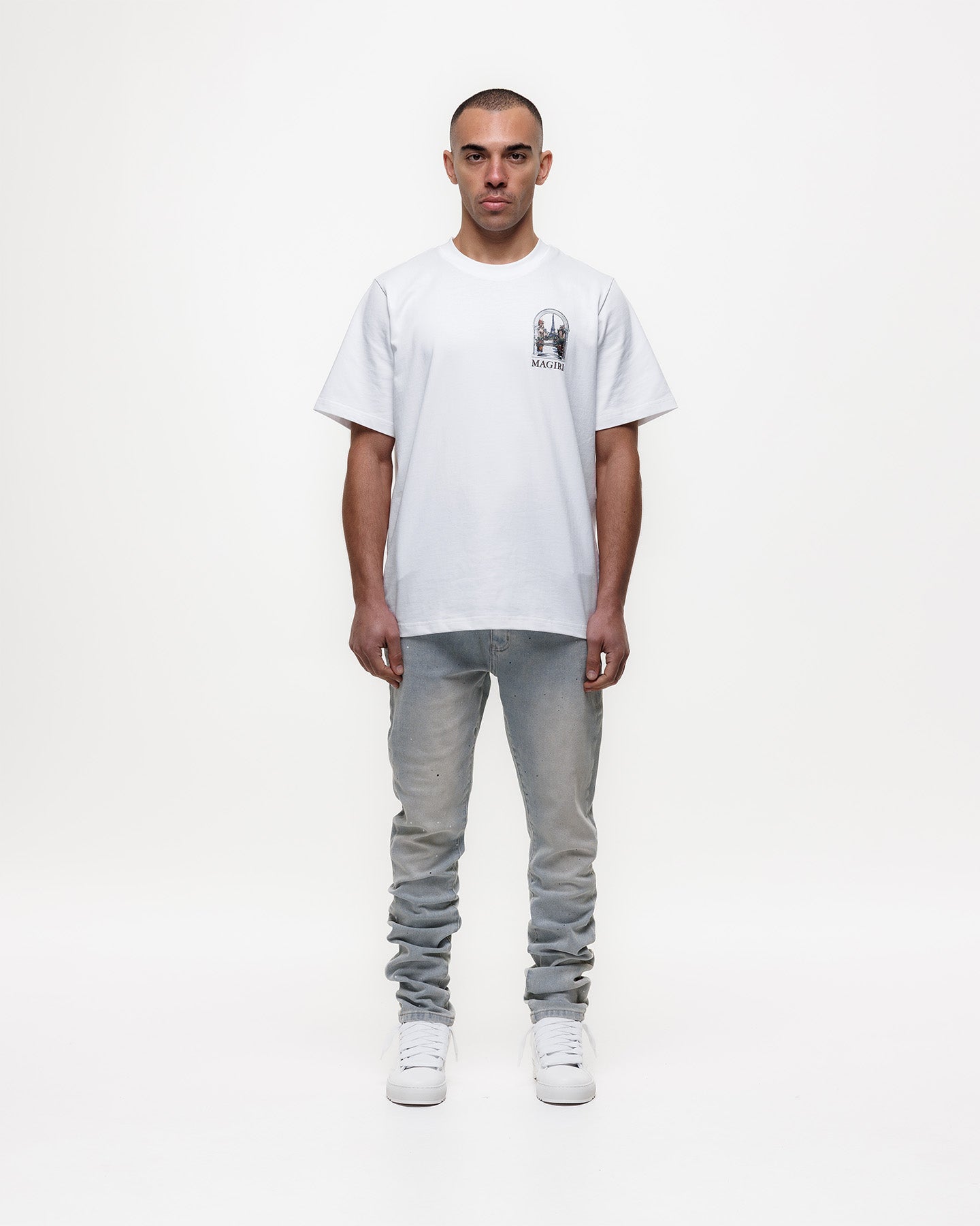 The Indigo Painted Slim Jeans have been crafted from premium light blue denim in a slim silhouette. Finished with a subtle wash for a refined, worn-in appearance, this style offers a clean and timeless profile. Designed with a signature white leather patch at the rear.