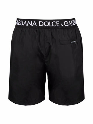 Dolce & Gabbana Logo Waistband Swim Shorts in Black
