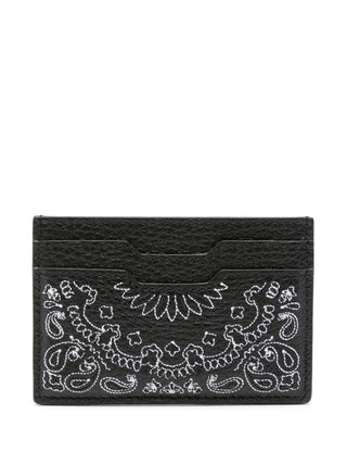 Off-White Diagonal Stripe Printed Card Holder in Black