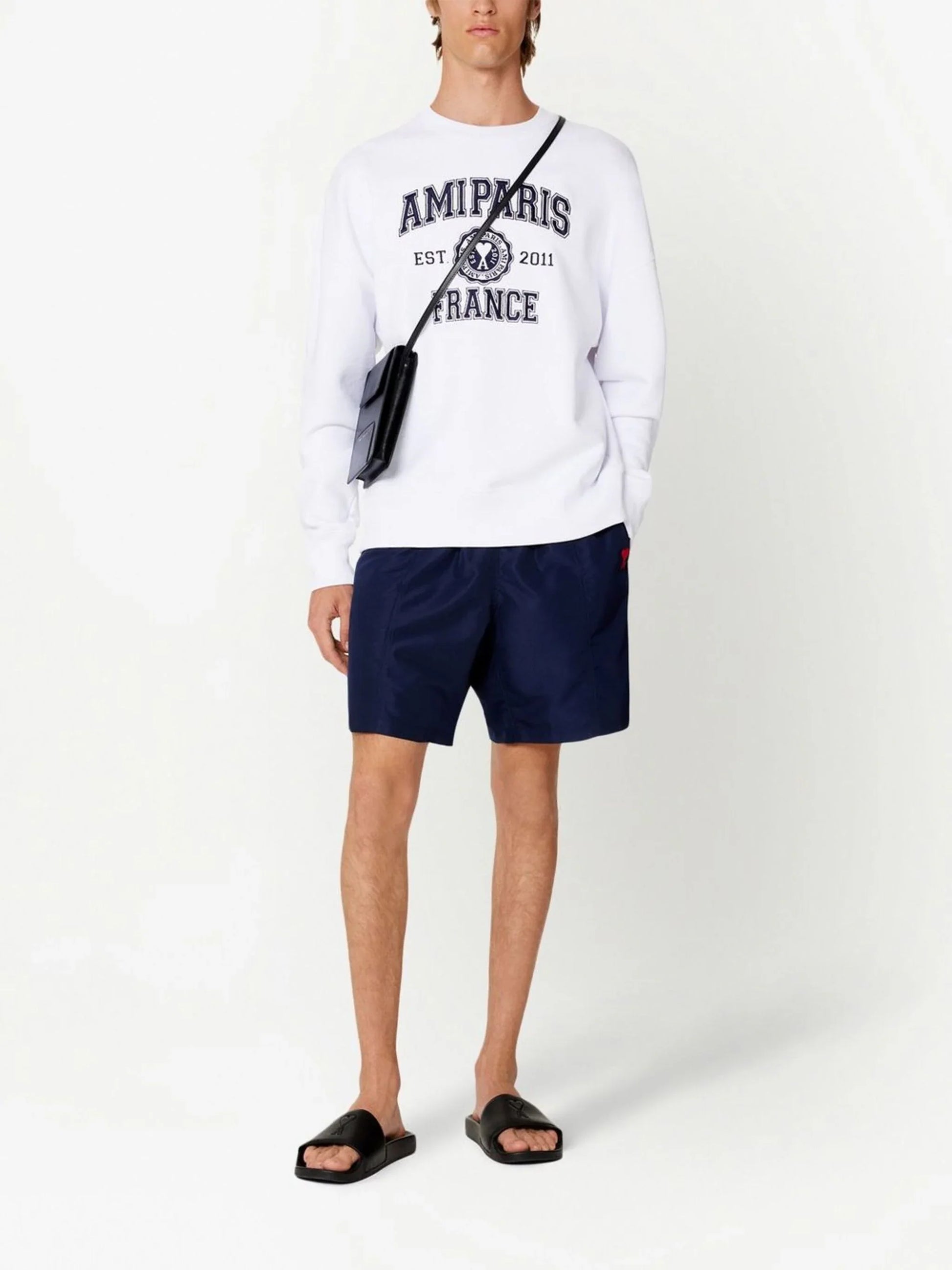 AMI Paris Embroidered logo Swim Shorts in Navy