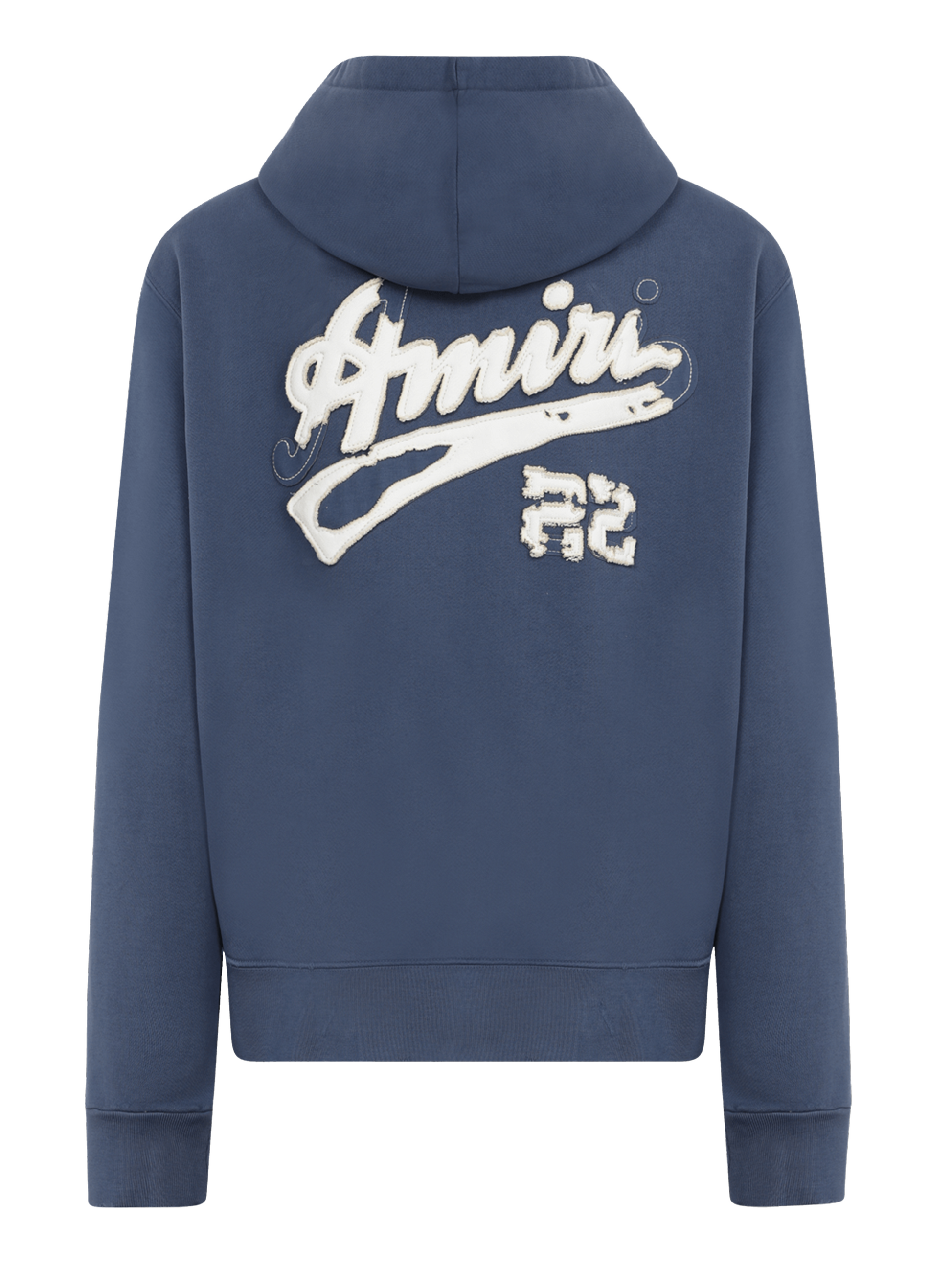 Amiri 22 Logo Embroidered Hoodie in Bluefin