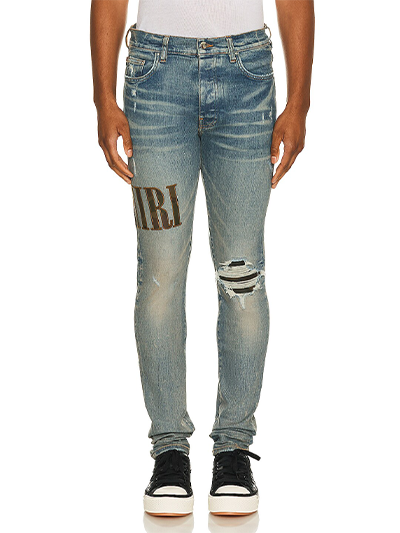 Amiri often takes cues from founder, Mike Amiri’s rock ‘n’ roll past – and the core applique jeans are a prime example. They’re crafted from a stretchy cotton blend and cut to a skinny fit, then whiskered, faded and distressed to achieve the brand’s much-loved worn-in look.