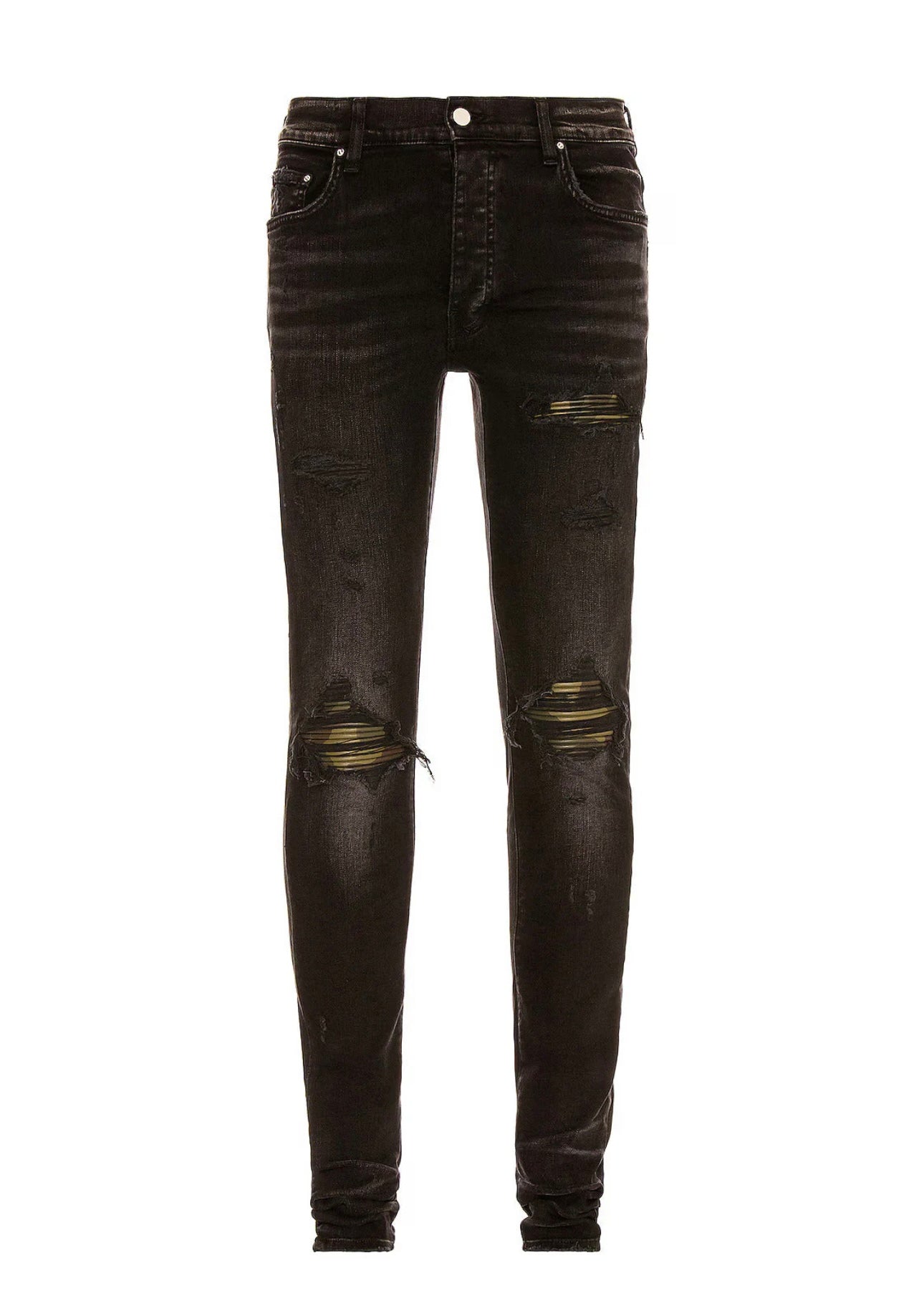 Amiri Leather Camo MX1 Aged Jeans in Black
