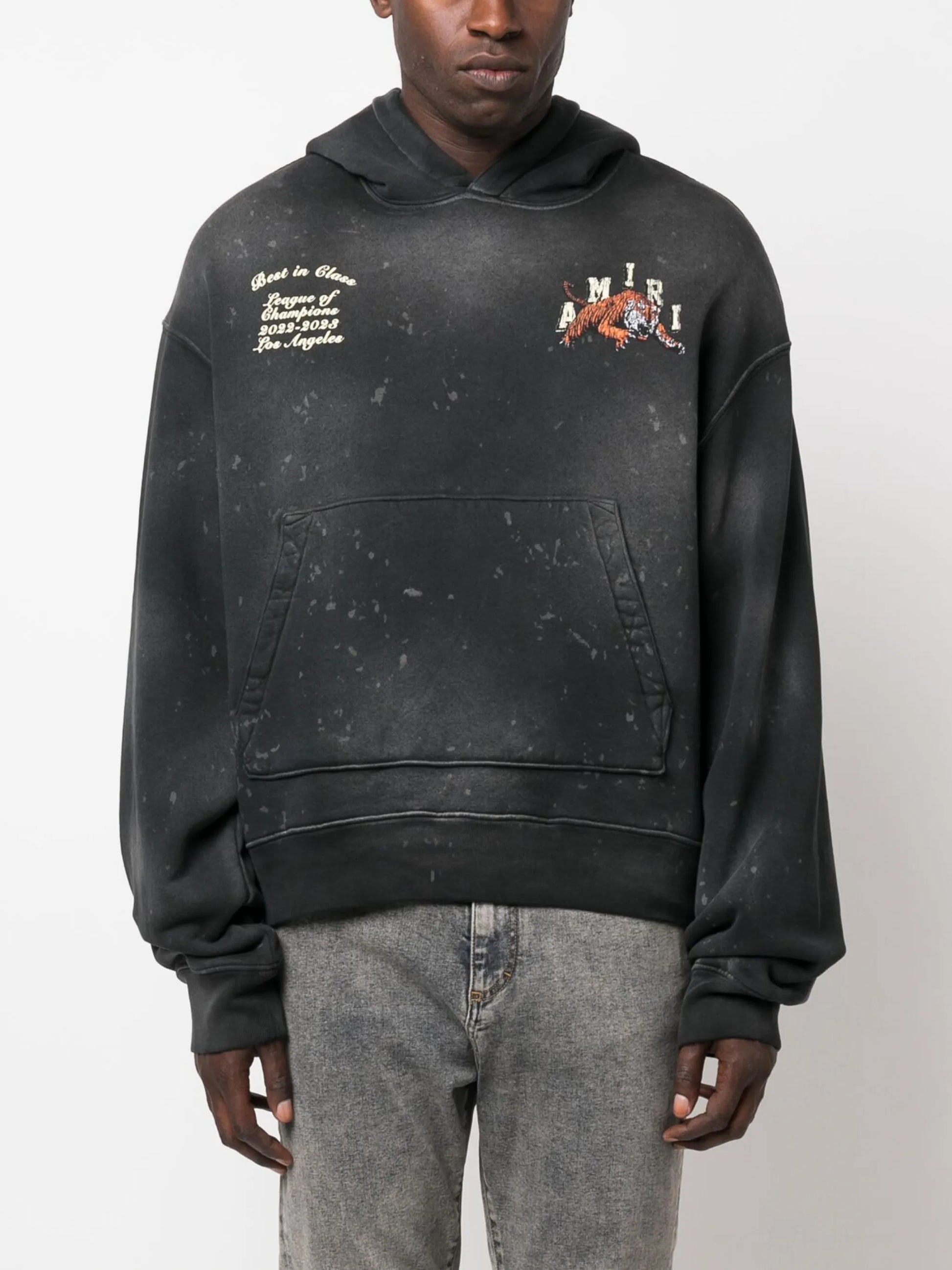 Amiri Varsity Tiger Vintage Washed Hoodie in Black