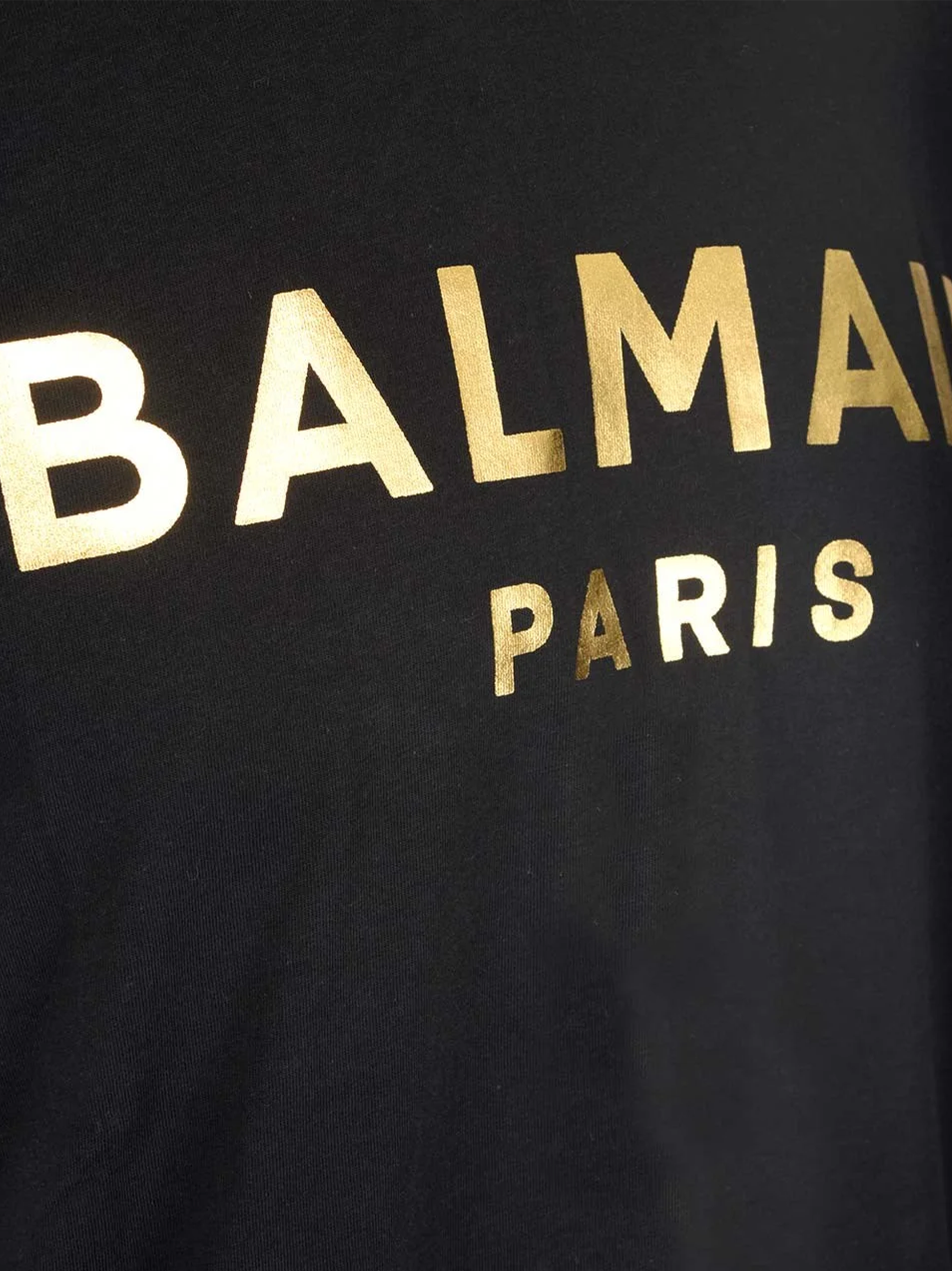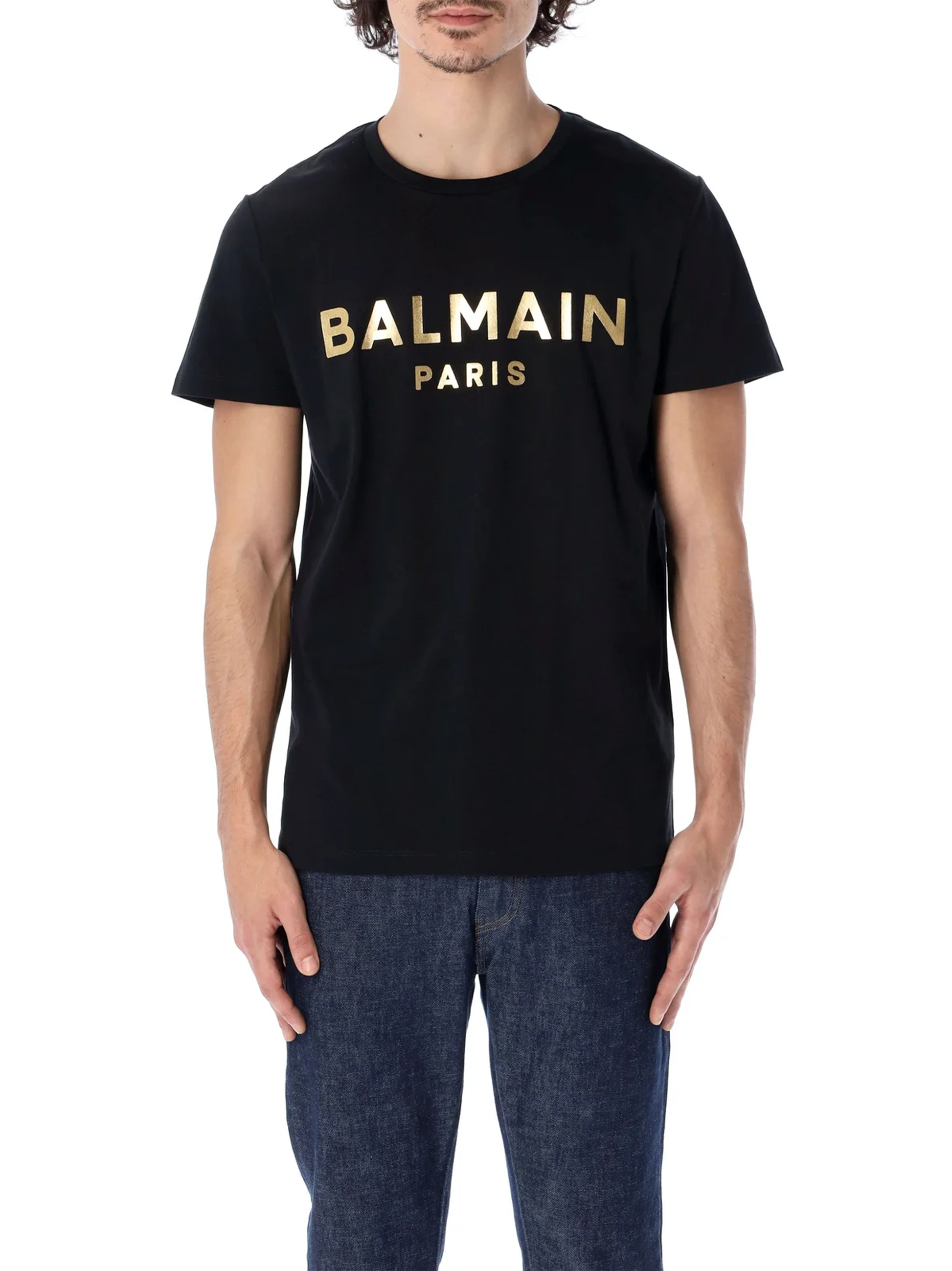 Balmain Paris Gold Foil Printed Logo T-Shirt in Black