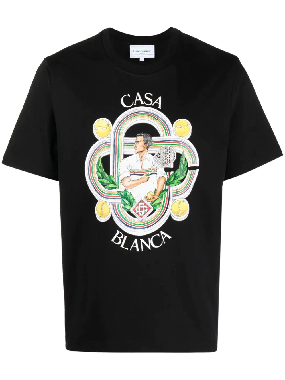Crafted from organic cotton, the Le Joueur T-shirt epitomizes Casablanca's sports-inspired aesthetic. Featuring seasonal artwork incorporating the brand's signature tennis iconography, it is presented in black and tailored for a relaxed fit.