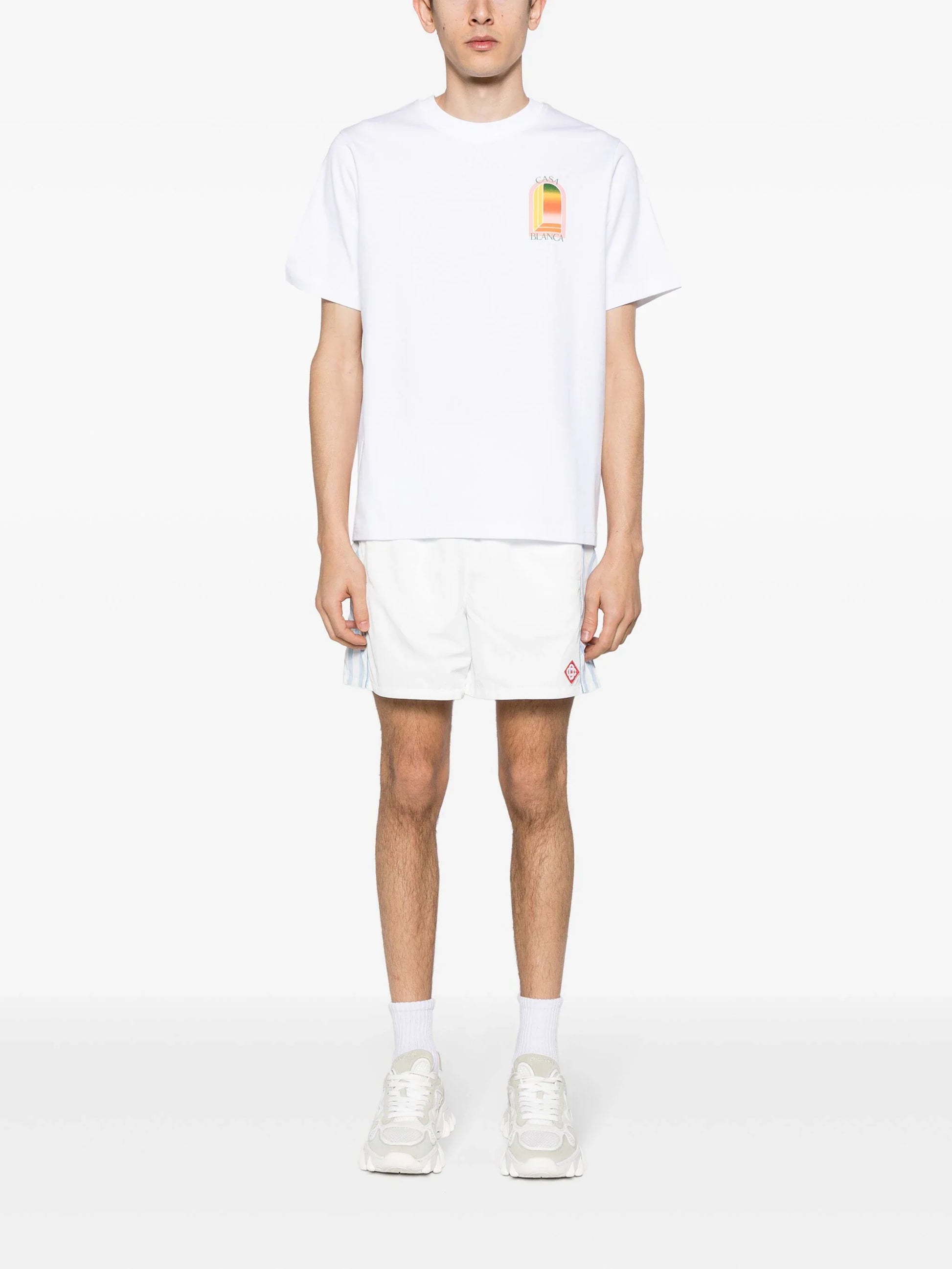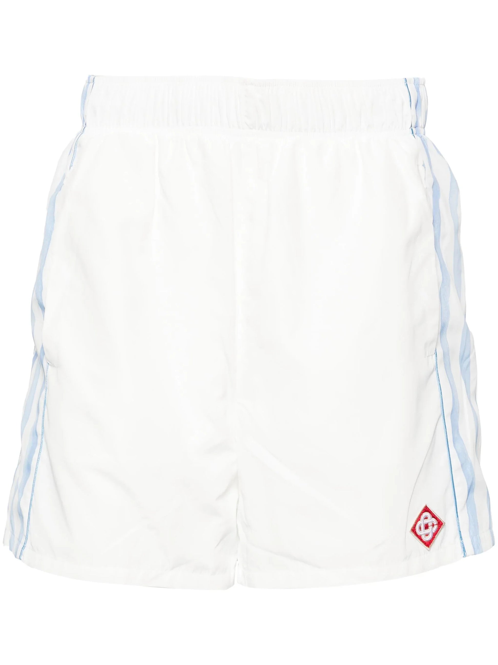 The track shorts are crafted and lined with polyester and feature blue and white wavy-striped side panels. Finished with front pockets and a back pocket, an elasticated waistband, the house's diamond logo and a Casablanca branded label.