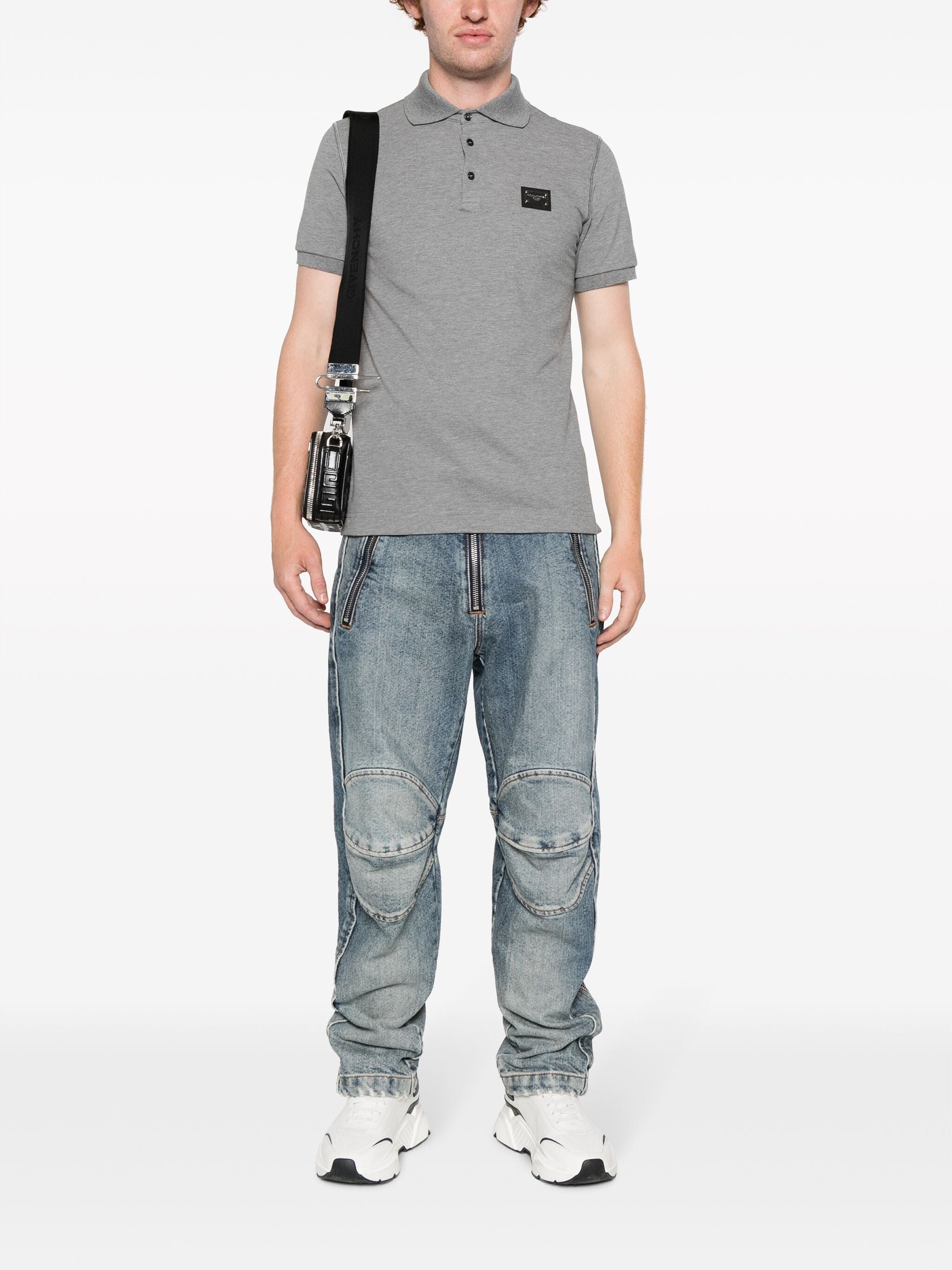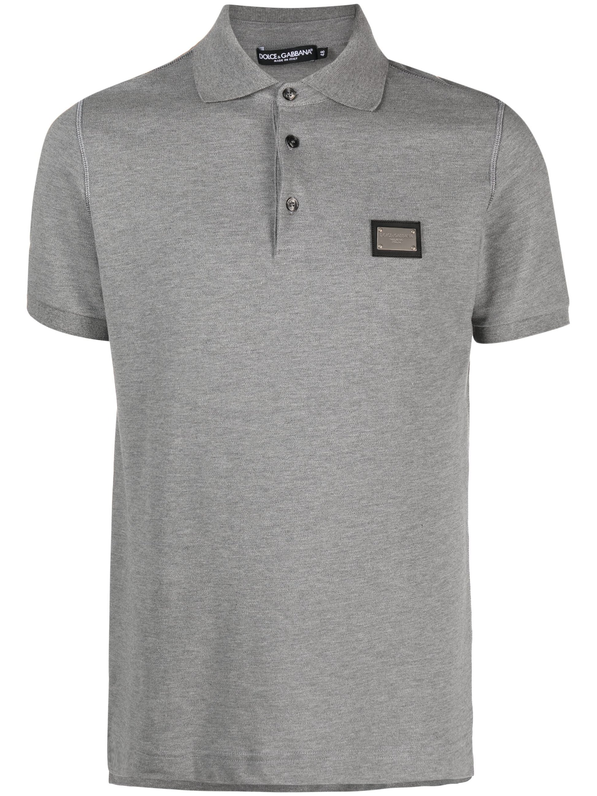 Dolce & Gabbana Silver Plaque Logo Polo in Grey