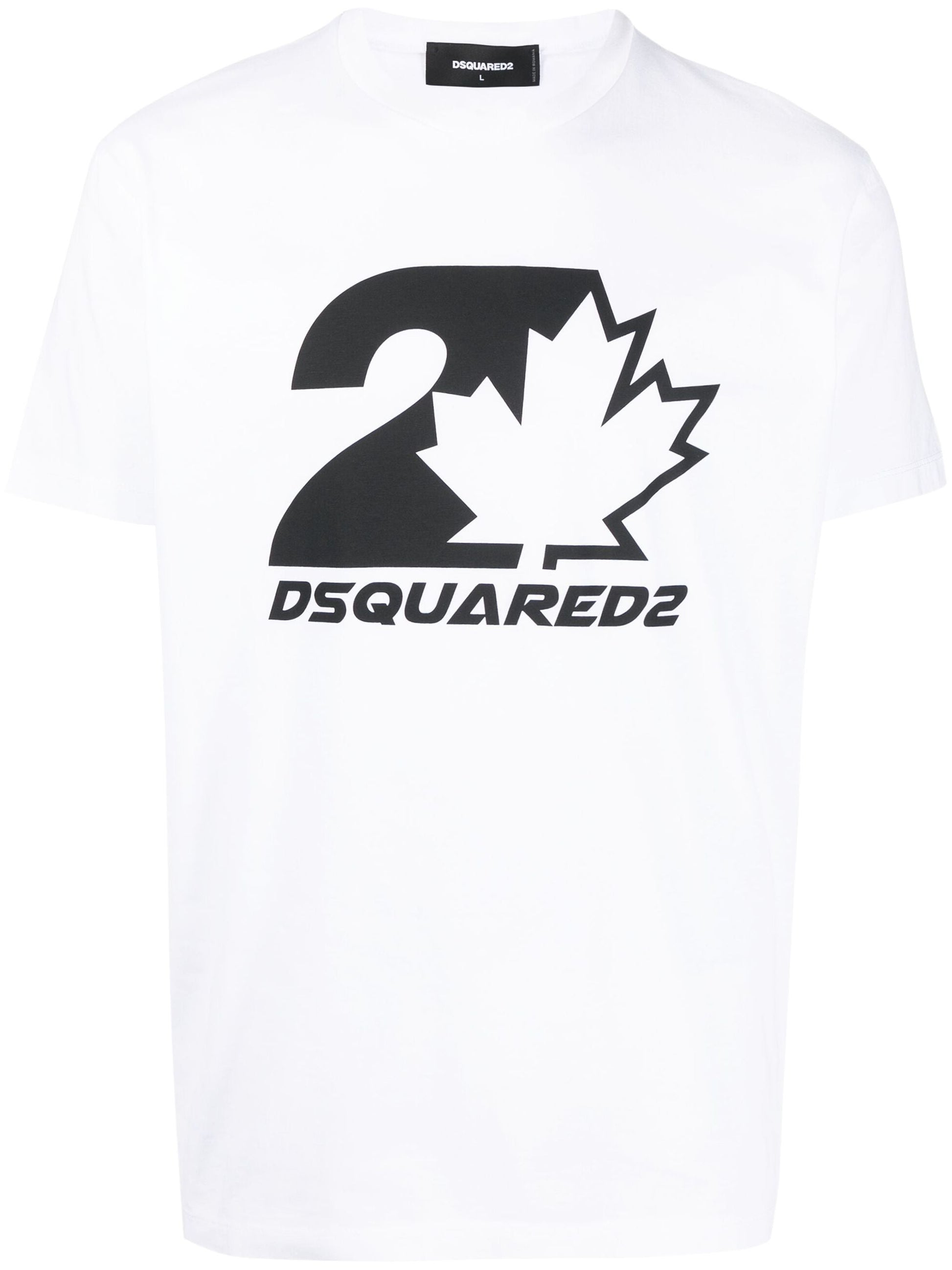 Dsquared2 Bold Maple Leaf Logo Printed T-Shirt in White