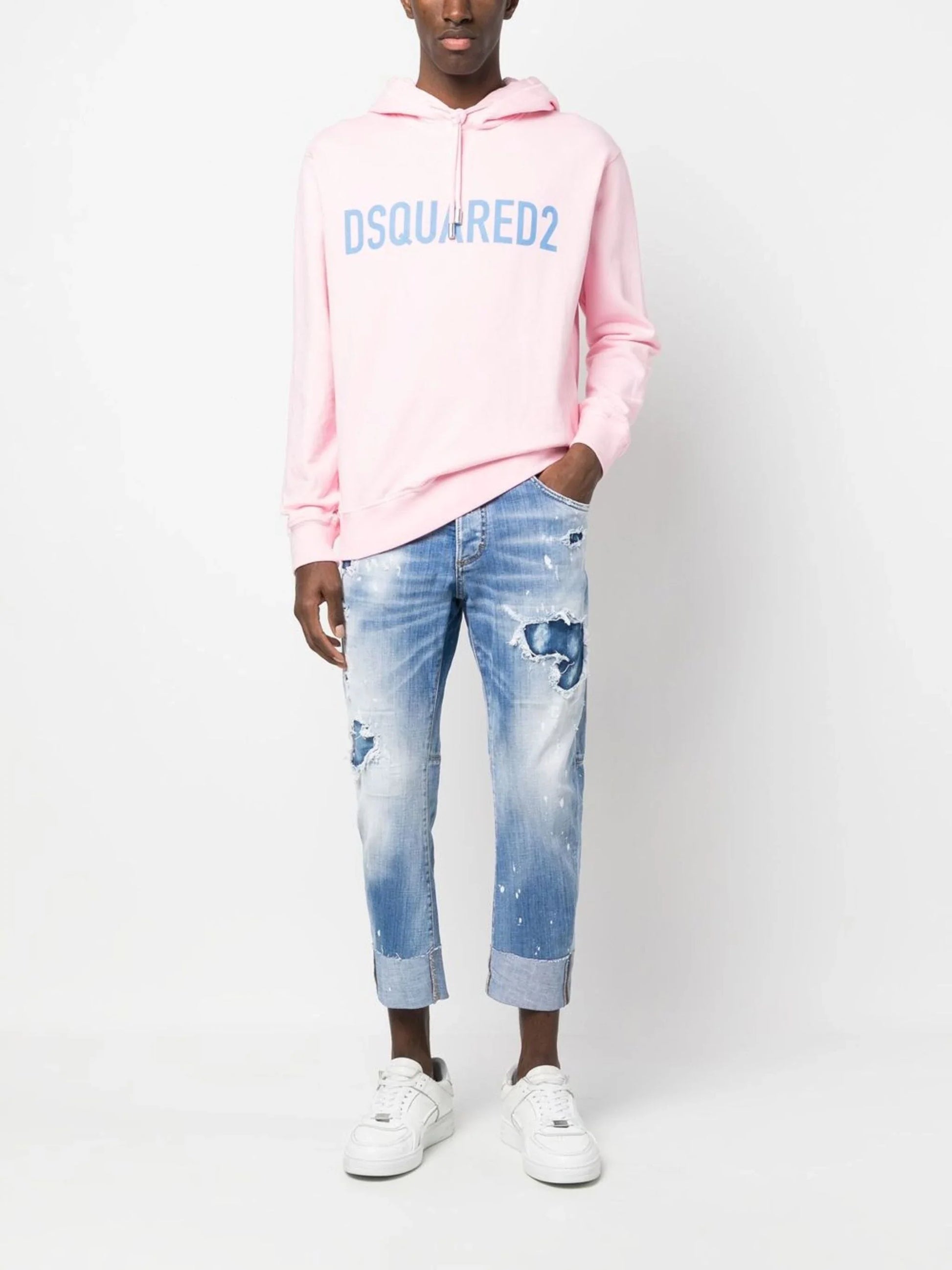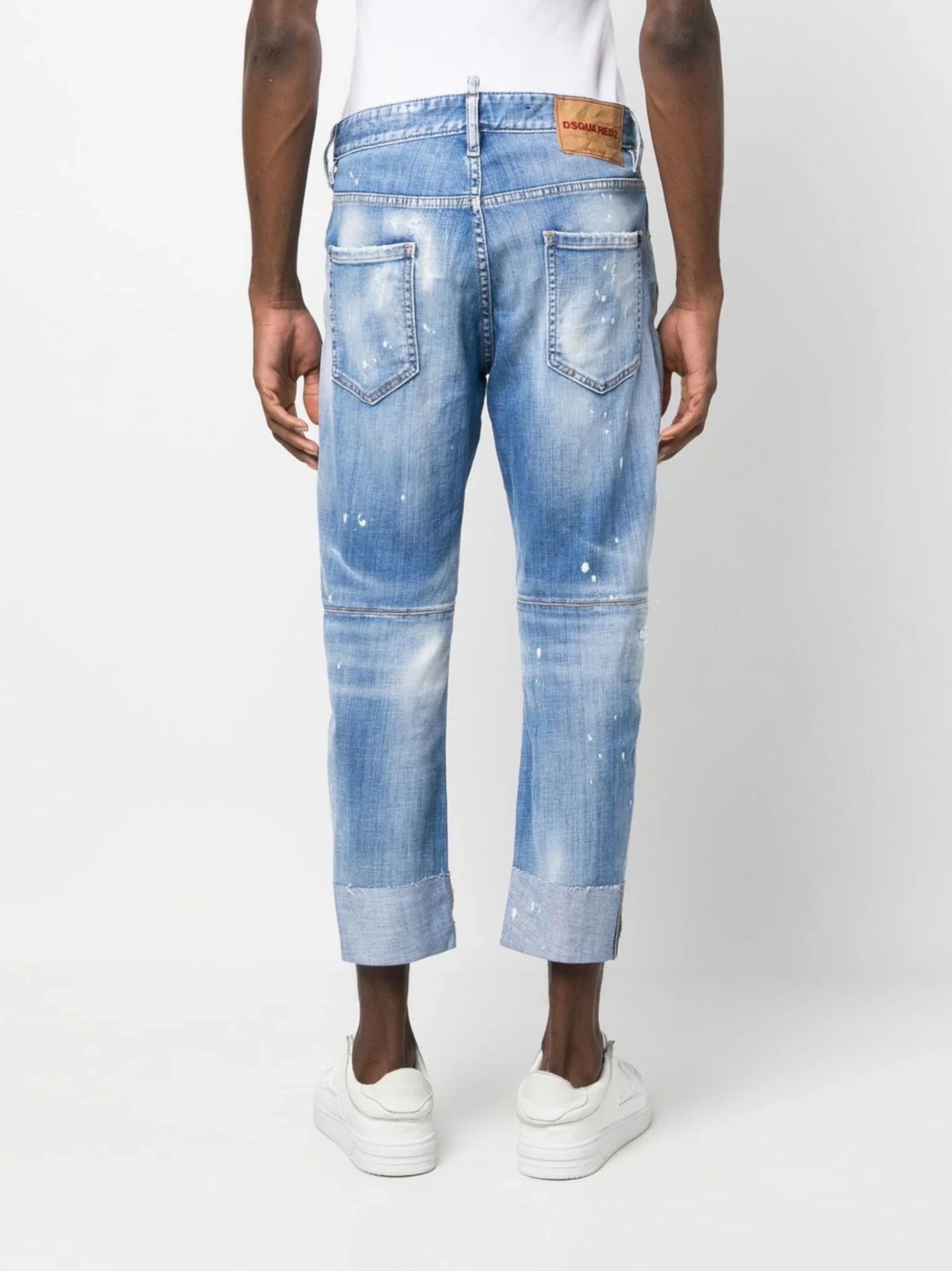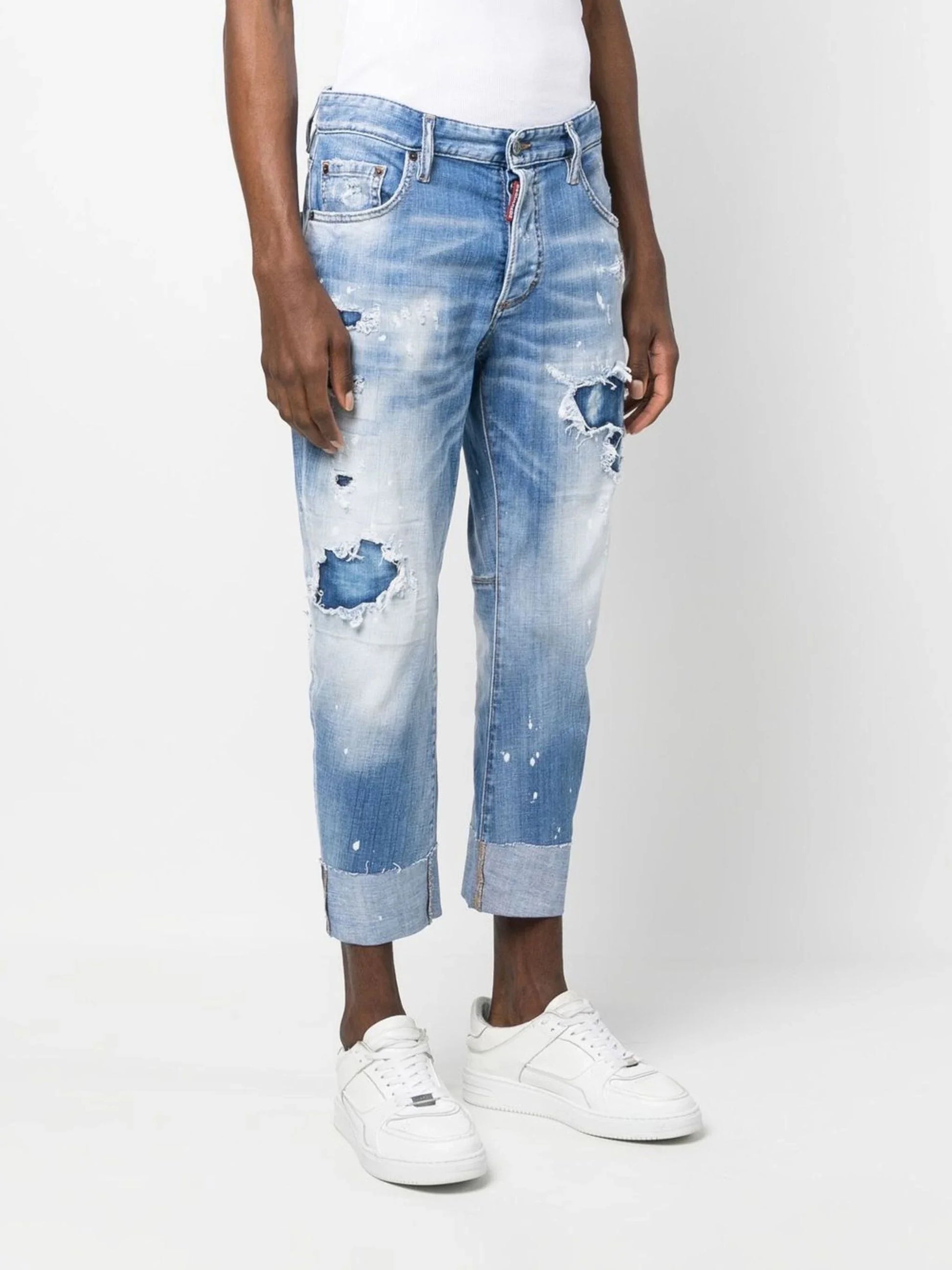 Detailed with heavy distressing, these jeans speak to Dsquared2's street-style aesthetic. The lived-in looking pair is cut to a cropped leg and features a paint-splatter effect, for a further deconstructed finish.