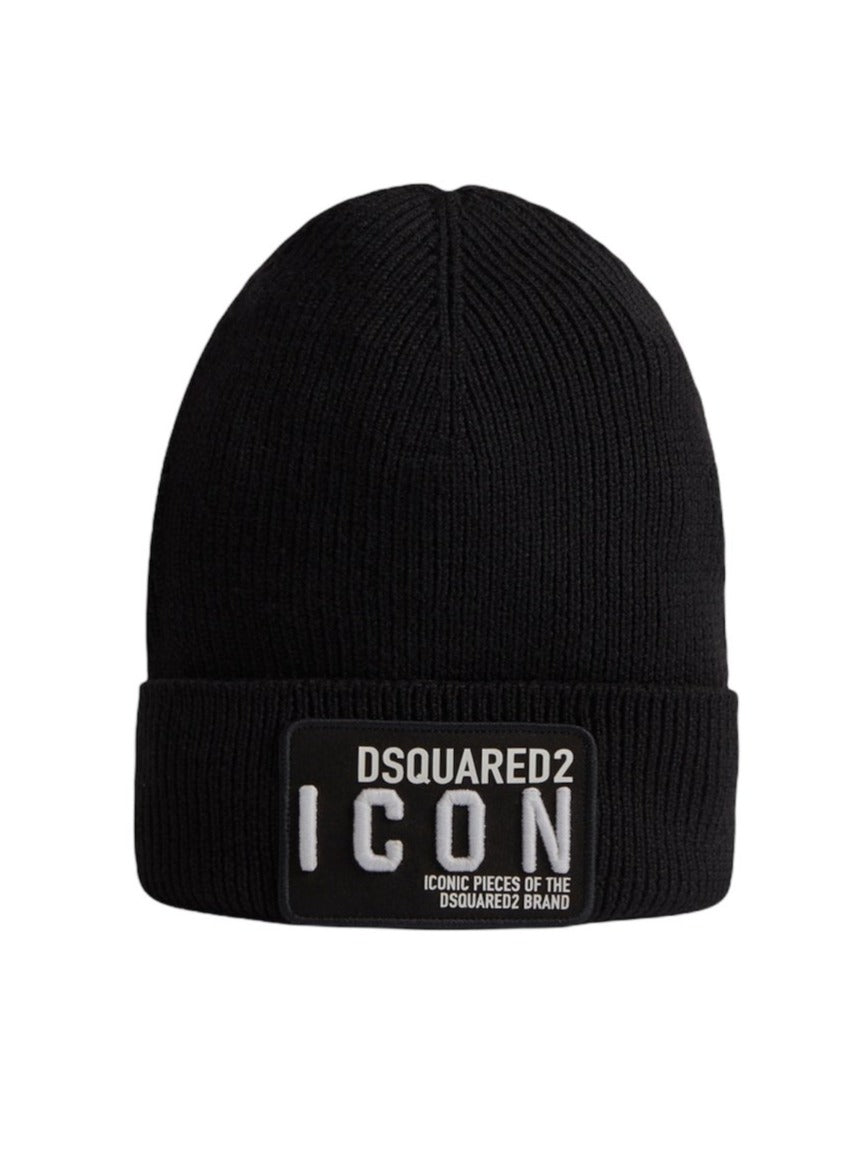 Crafted in soft black wool, this knitted beanie from Dsquared2 is detailed with the brand's Icon embroidery to the front.