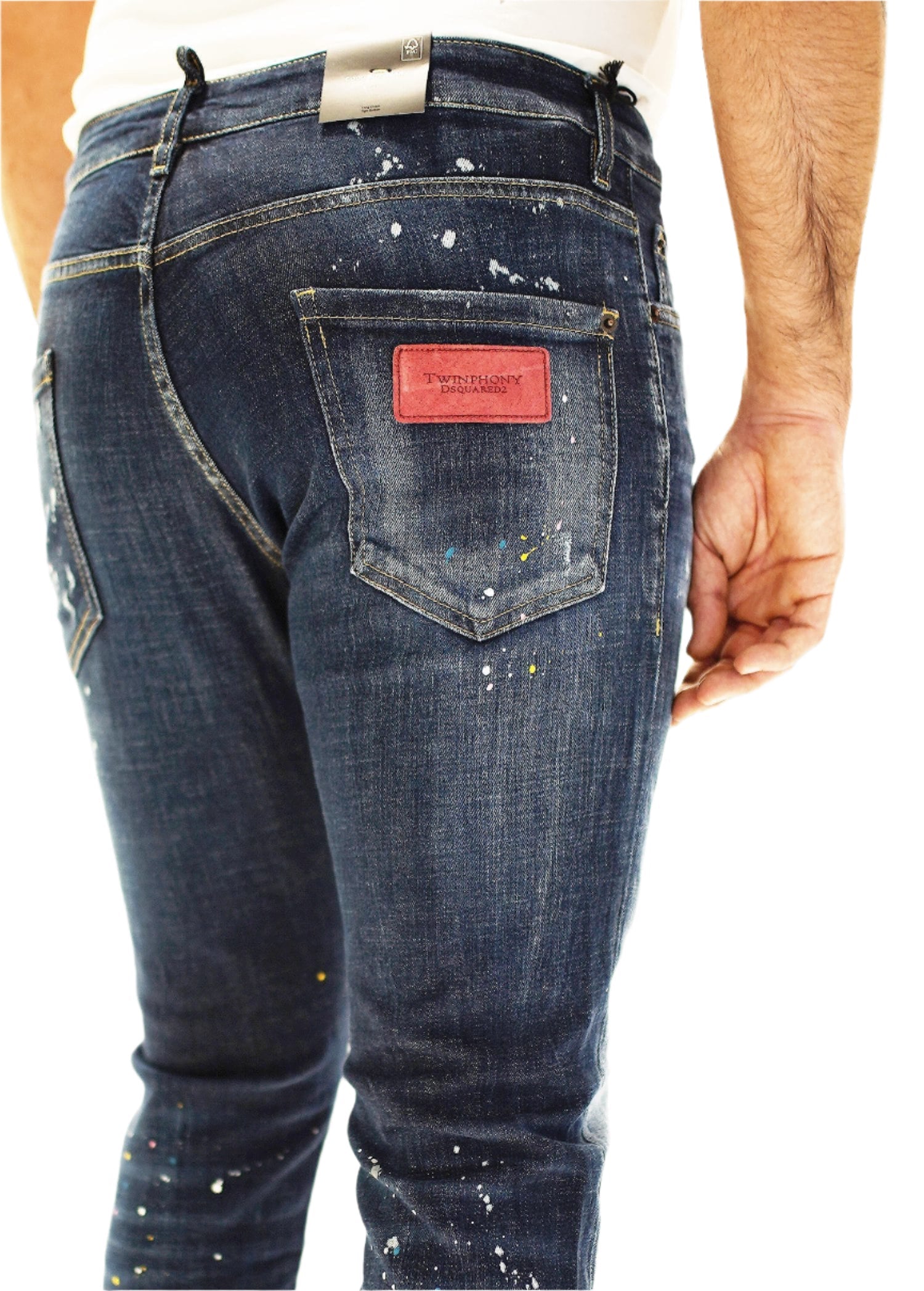 Dsquared2 Twinphony Paint Splattered Jeans Blue