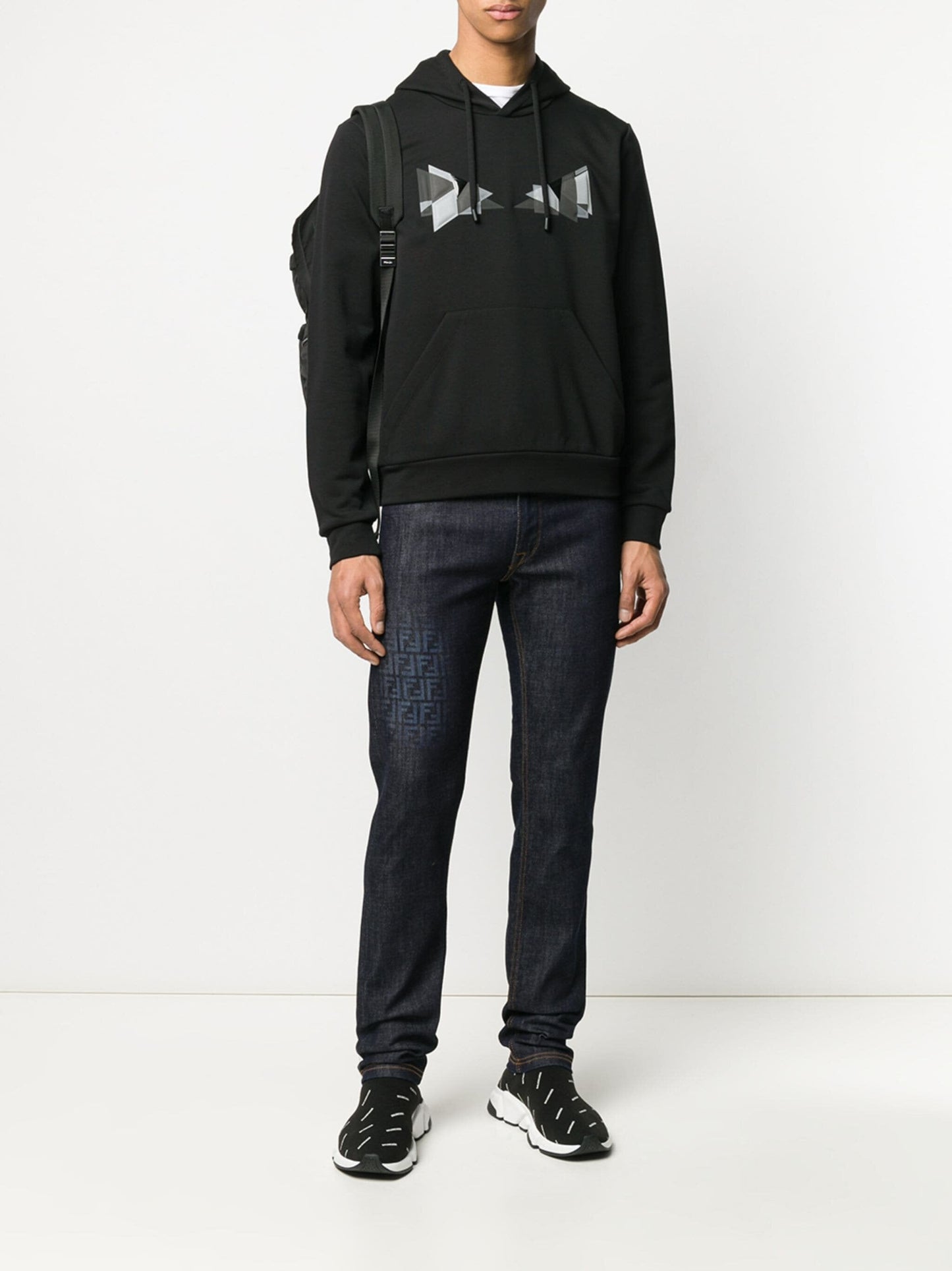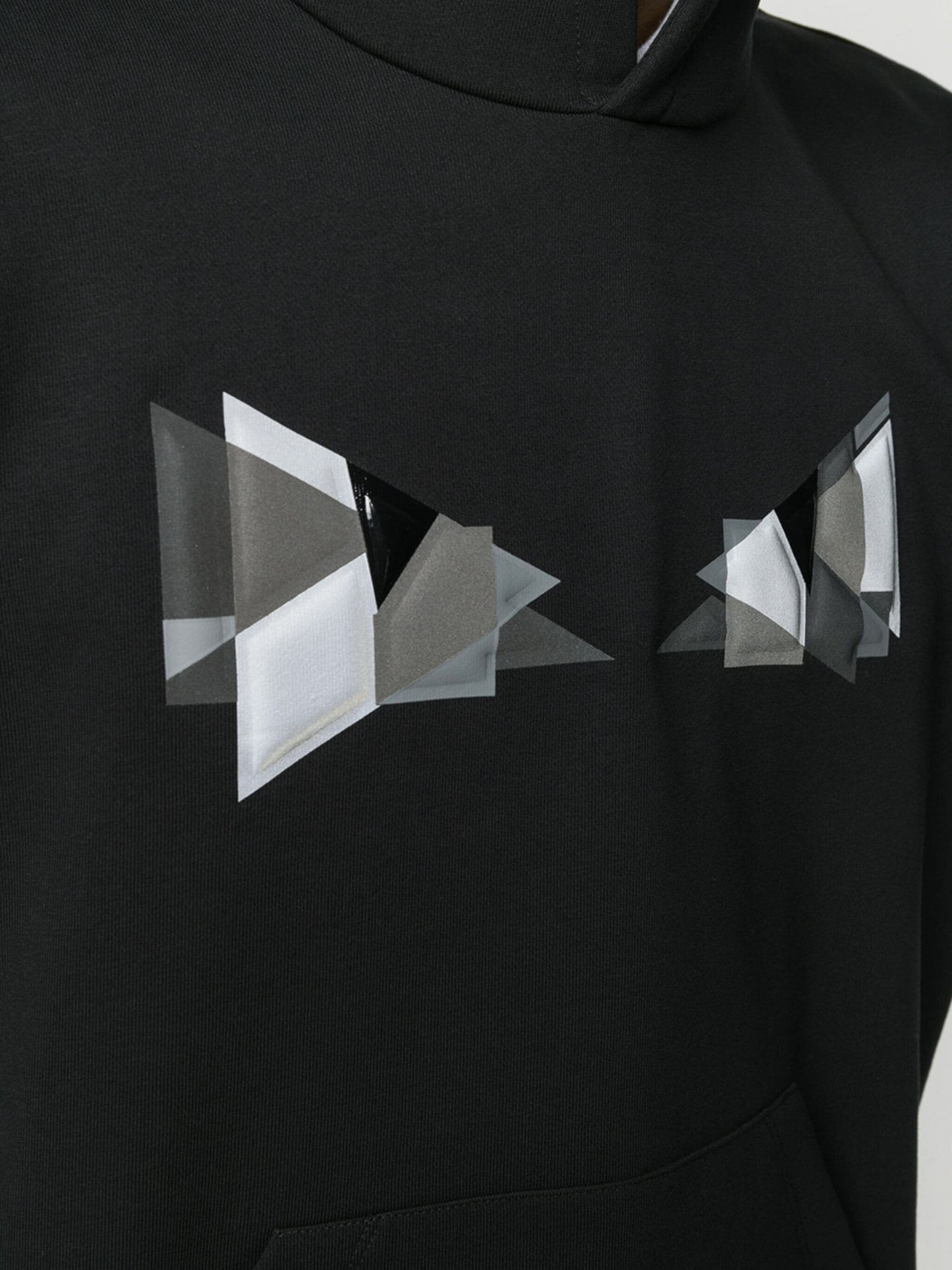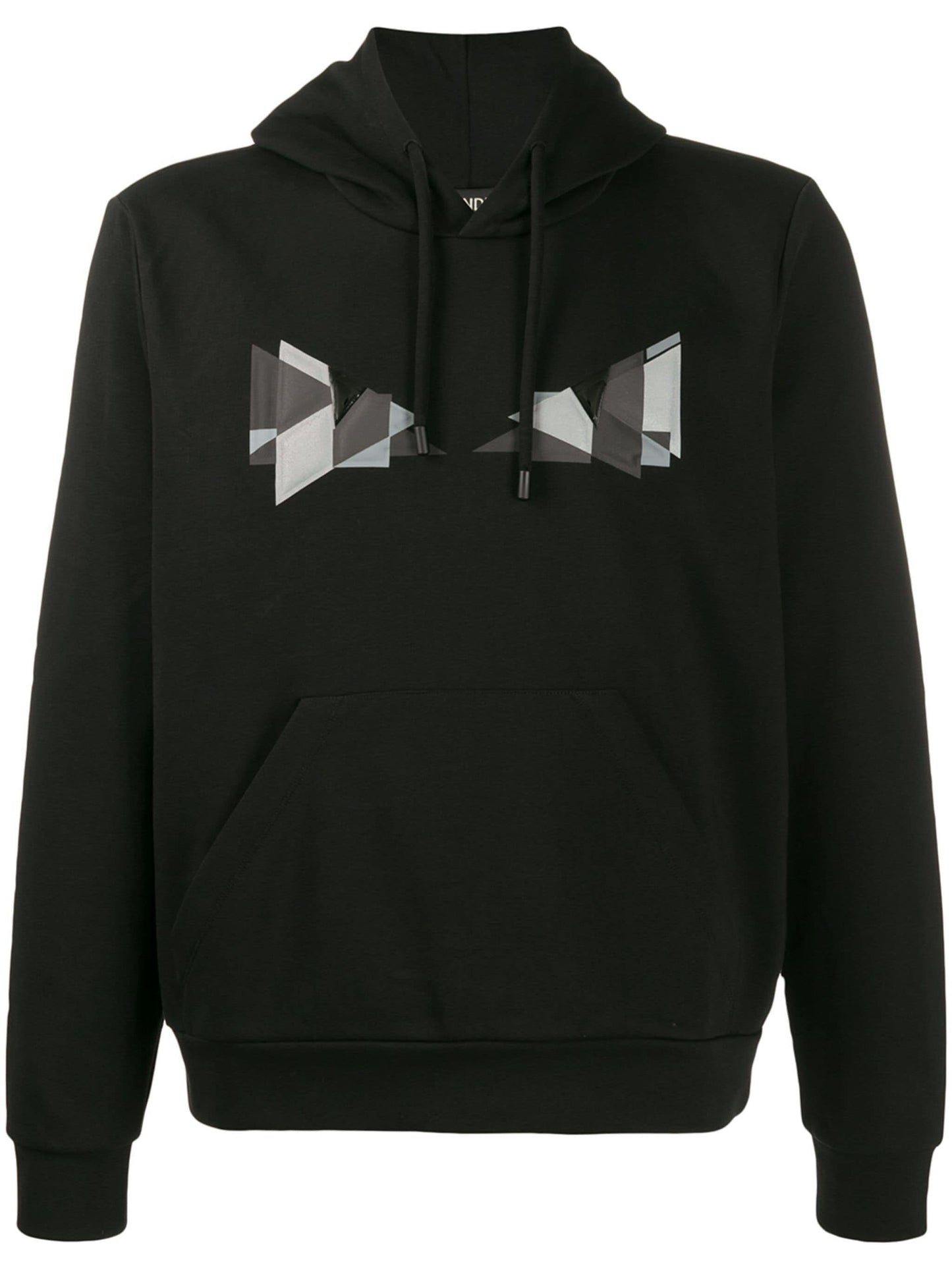 Don’t let the angry expression put you off, this black cool hoodie from Fendi proves itself a useful little companion. A brand main-stay, the iconic Bugs design is recognisable by its icy futuristic design. Mind your fingers. Featuring a hood with drawstring tie fastenings, long sleeves, a ribbed hem and cuffs, a kangaroo pocket and a Bags Bug Eye motif.