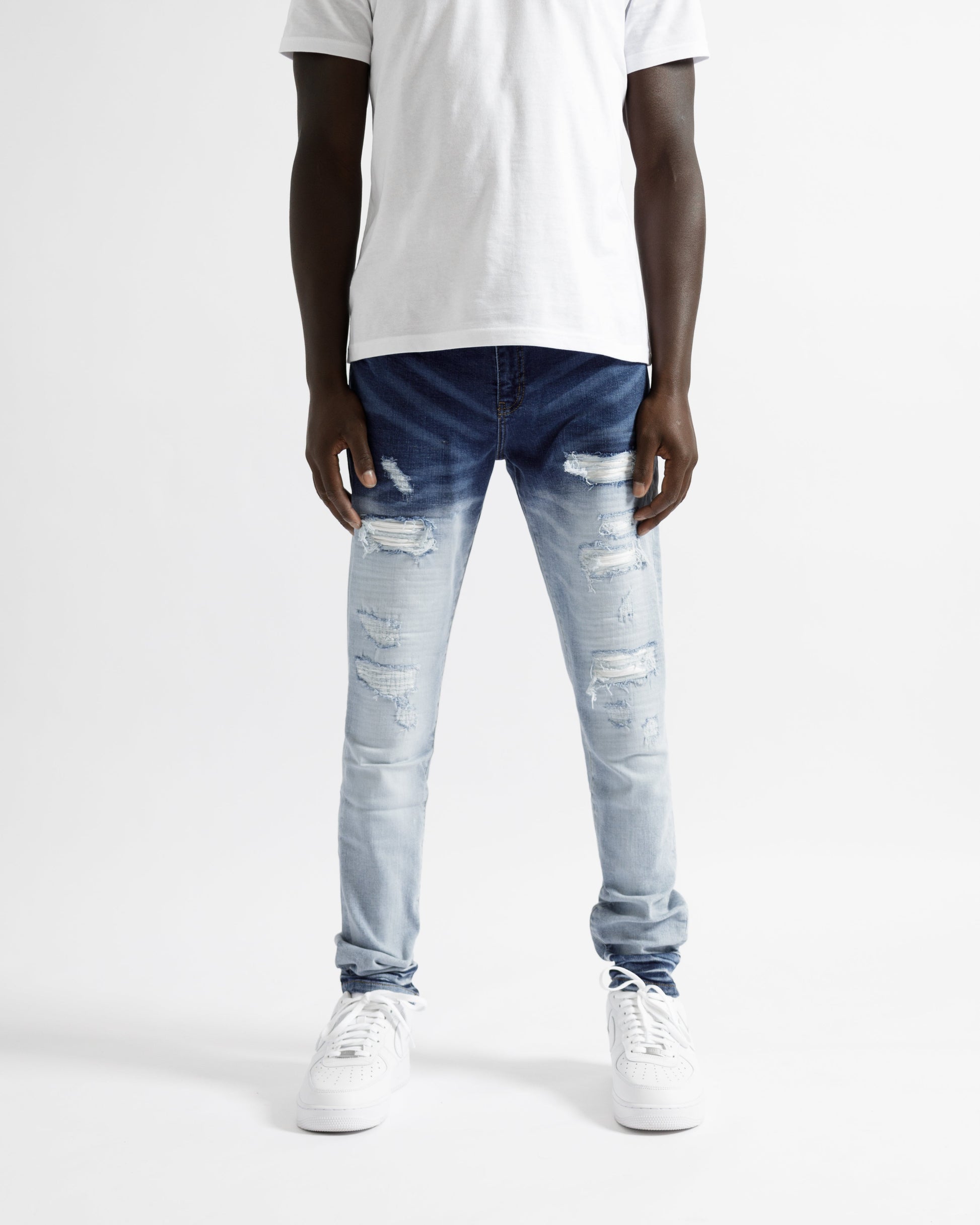 Magiri Cannes Gradient Faded Ripped Jeans in Blue