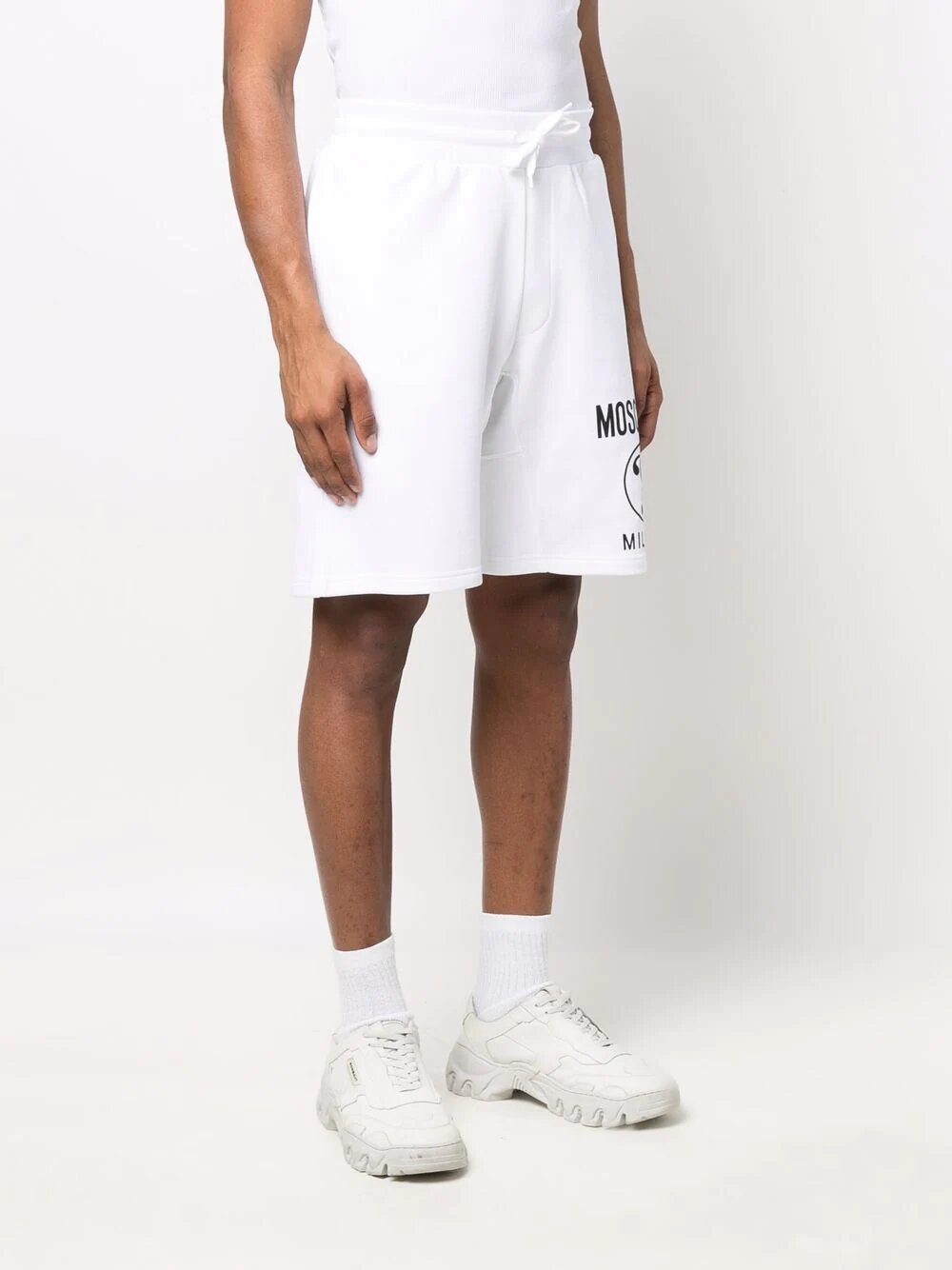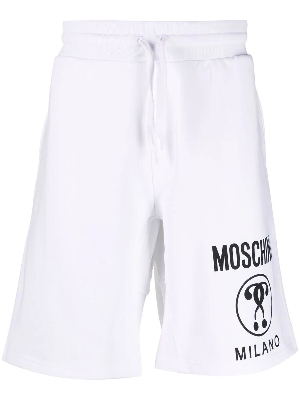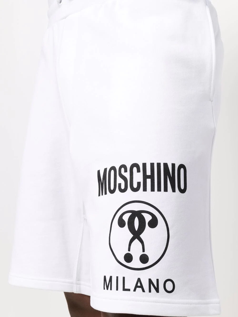 Moschino Double Question Mark Logo Print Track Shorts in White