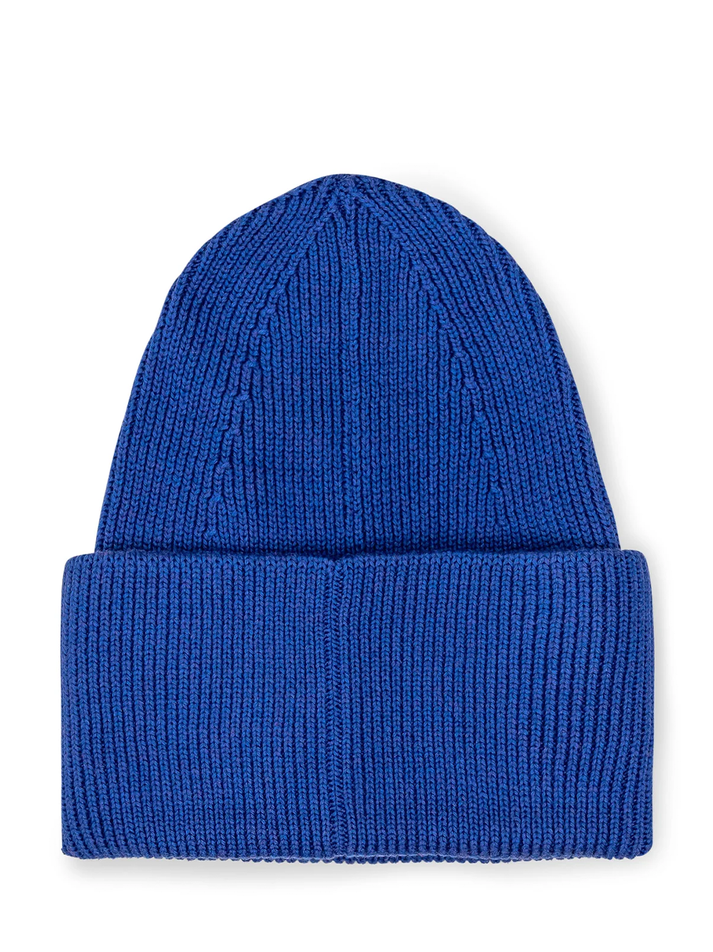 Blue ribbed cotton and cashmere beanie with Off logo on the front.