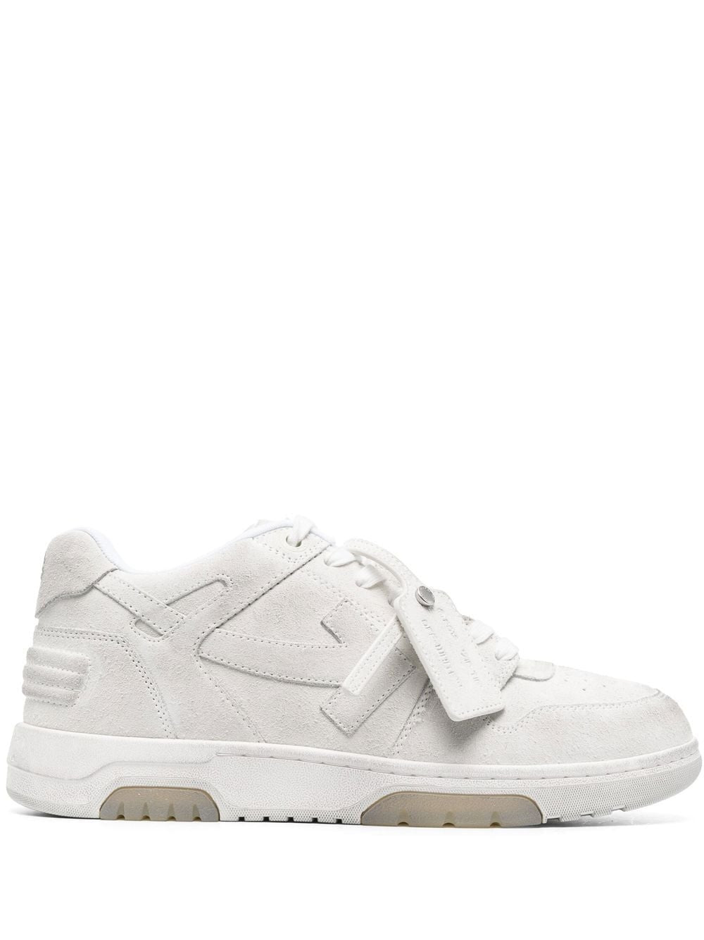 Crafted from white suede, these Out of Office sneakers from Off-White are adorned with the brand's iconic Zip Tie tag and feature the Arrows motif to the side that attests to the brand's penchant for street style codes.
