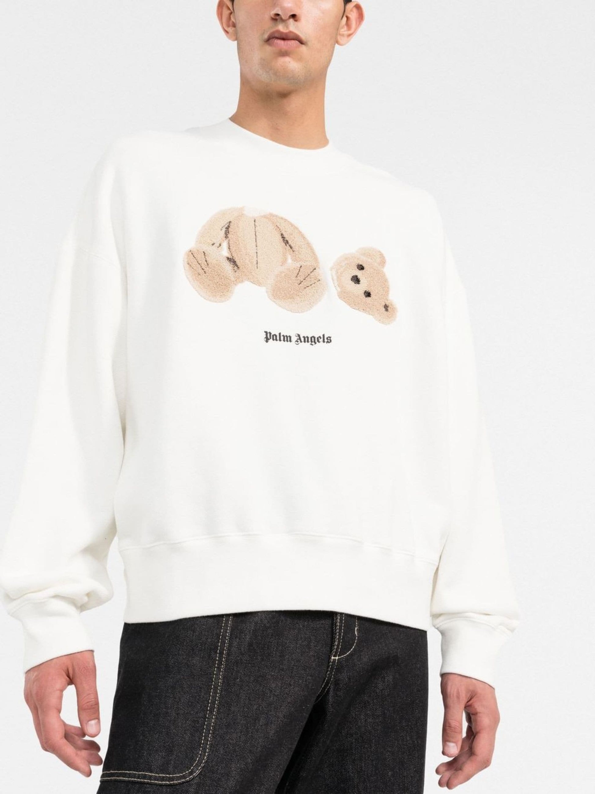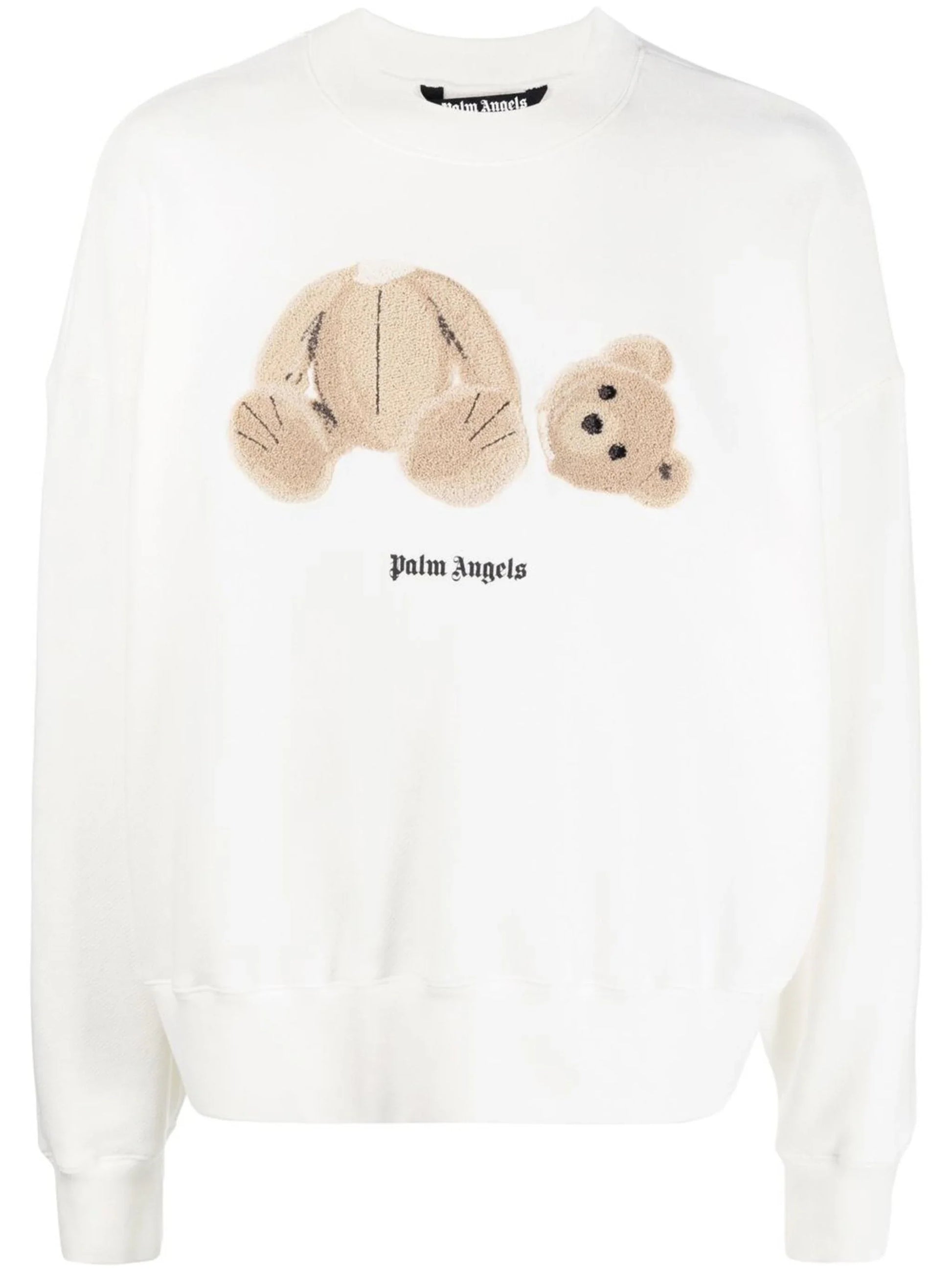 Cut for a relaxed fit that embraces the brand's casual approach to garments, this soft cotton sweatshirt from Palm Angels' SS22 collection is defined by a signature Bear print at the front and finished with a crew neck and dropped shoulder that enhances its streetwear-inspired silhouette.