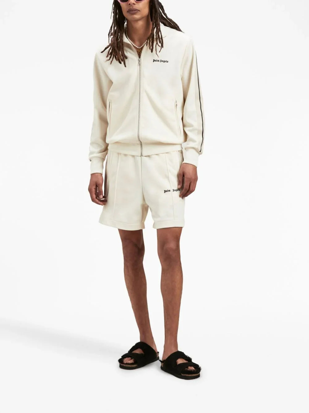 Palm Angels Track Logo Print Jacket in Butter/Cream