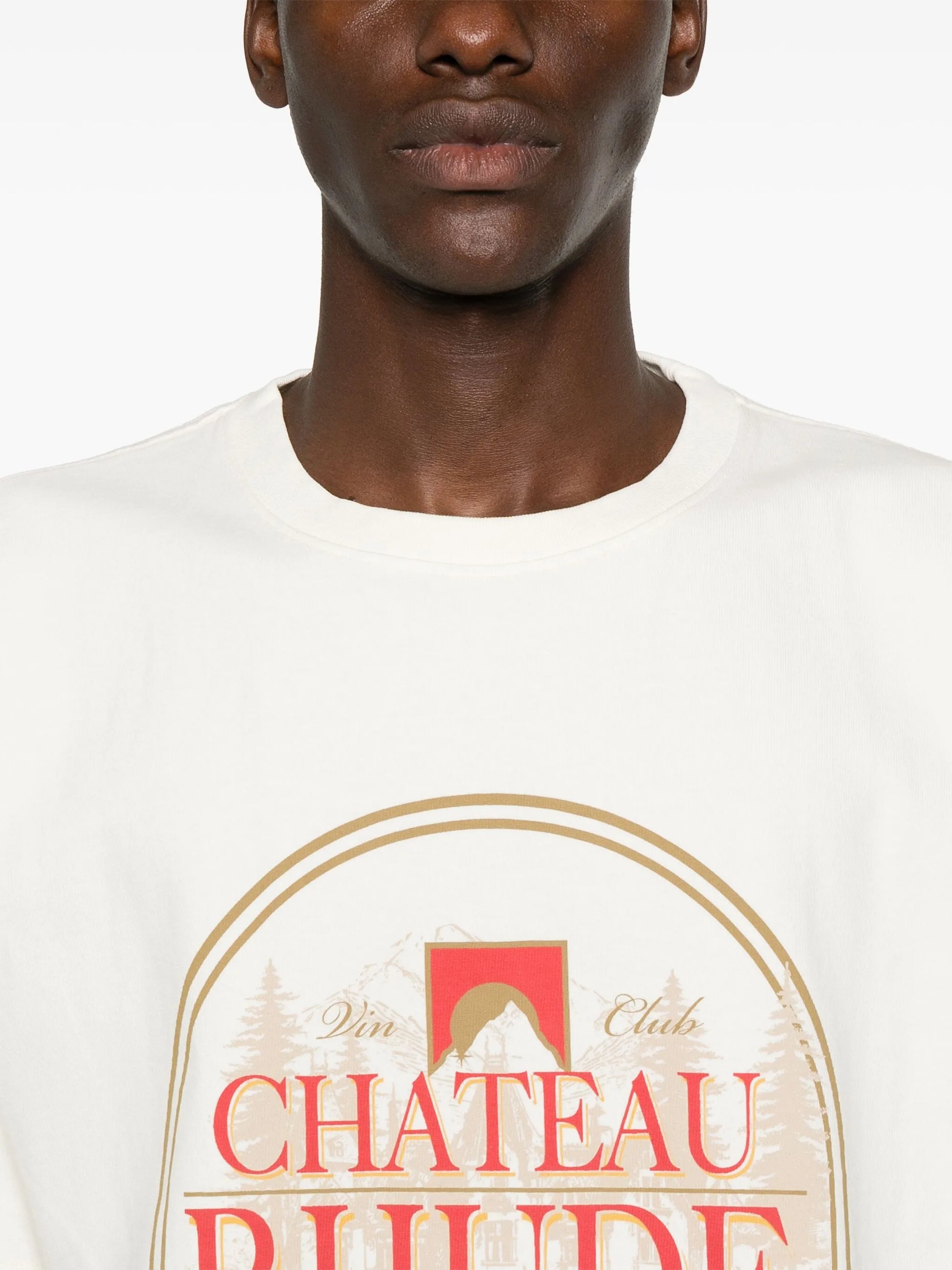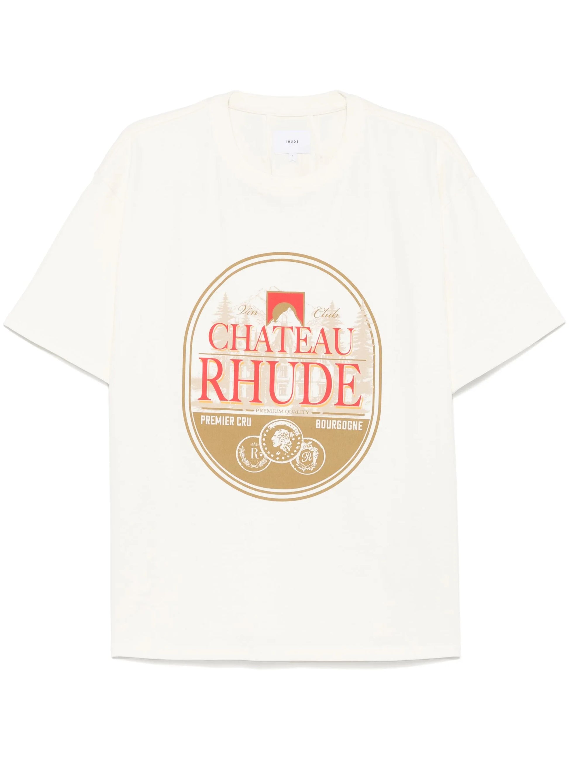 Custom-fit vintage wash cotton short sleeve tee-shirt with Chateau Rhude Premier Cru graphics printed at front, with a clean back.
