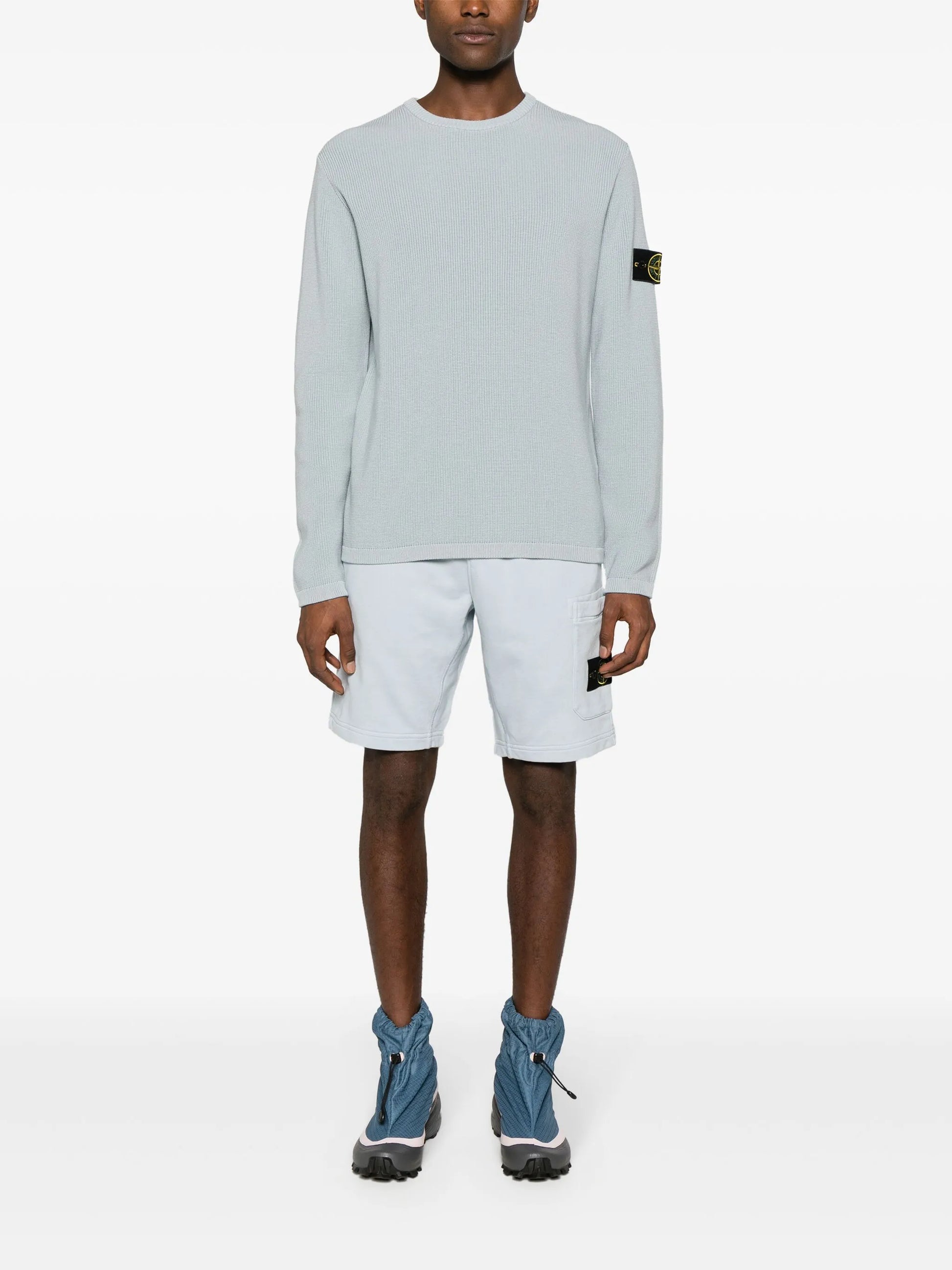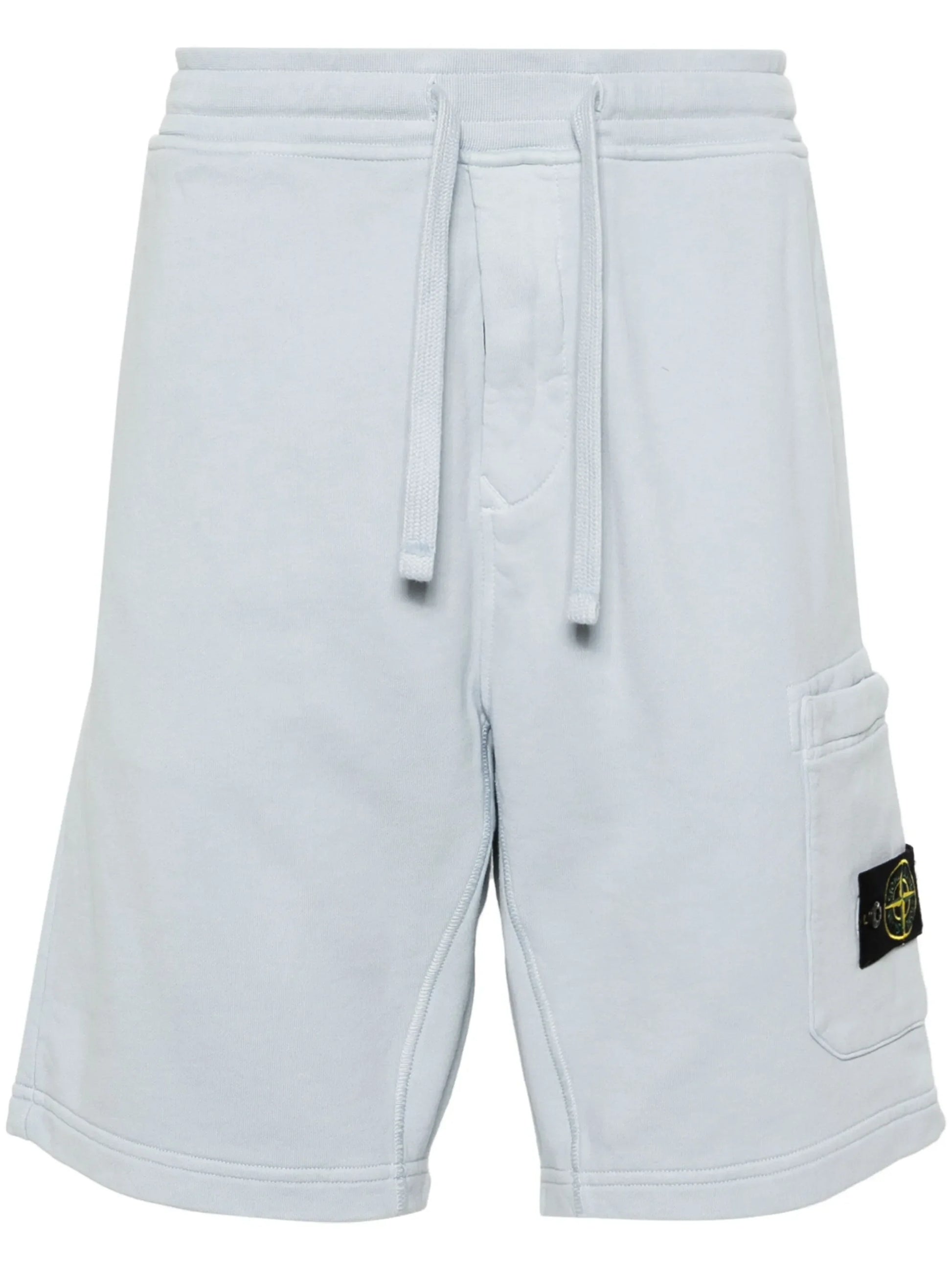 Stone Island's Compass badge debuted in 1982 as a symbol of the brand’s adventurous spirit and remains its most iconic emblem to this day. A detachable version is buttoned at the side pocket on these light-blue cotton shorts in signature form.