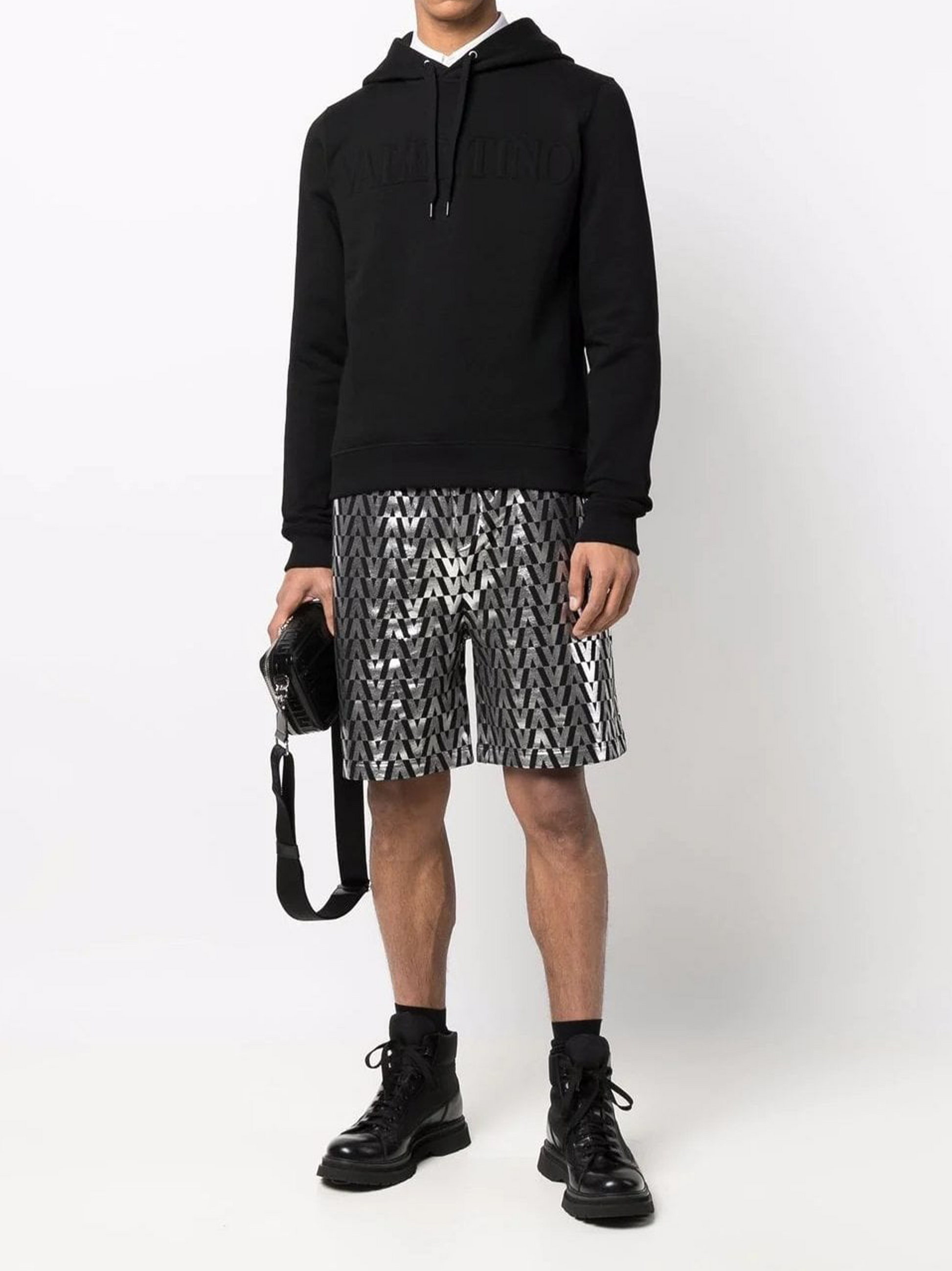 Valentino Embossed Logo Black Hoodie. Made with comfort and style in mind, this easy-to-wear hoody from valentino is a must have in your wardobe. Perfect luxuary look, made in italy this soft feel jumper featuing the brand name across the chest.